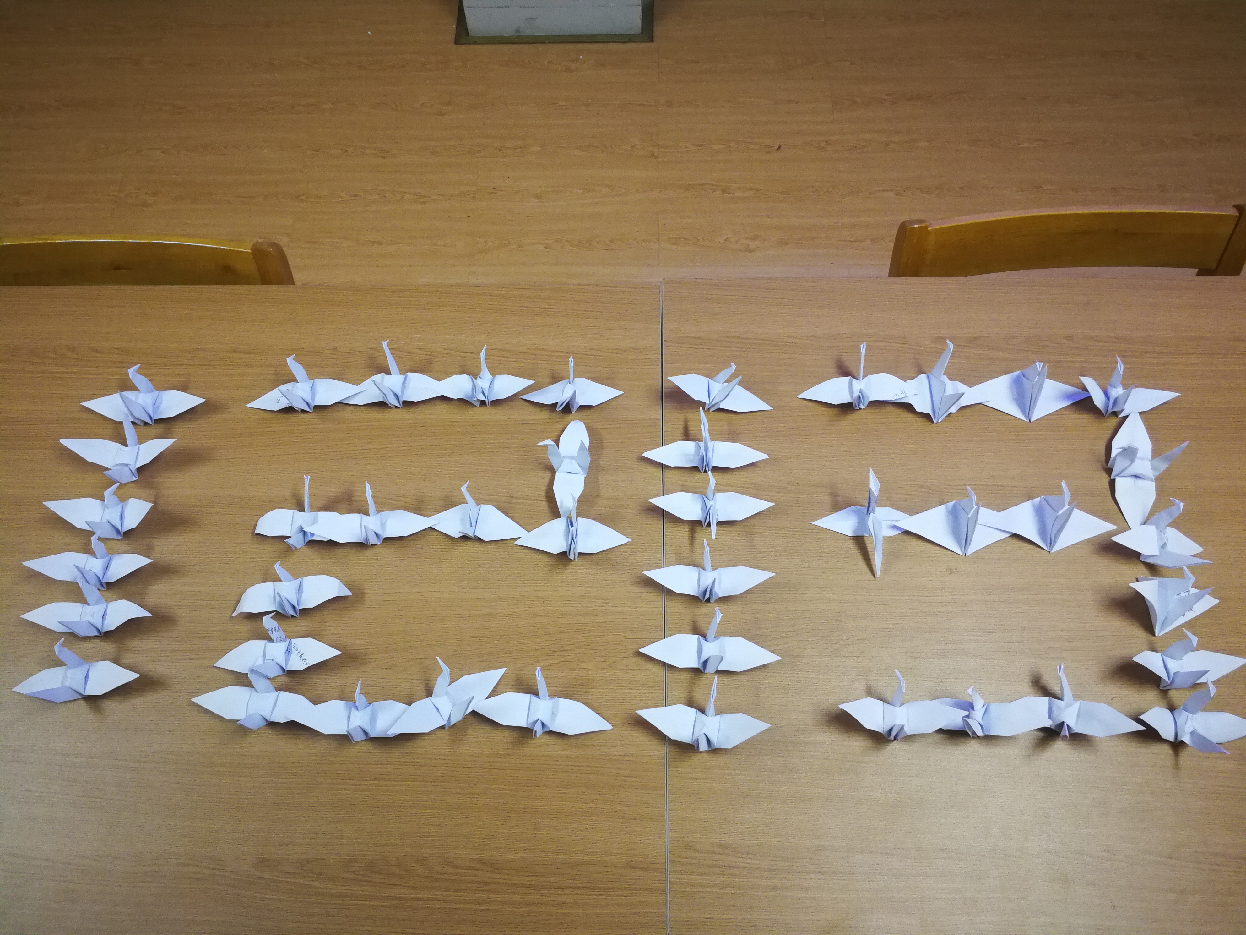 “信笺寄情,传递哀思”:党支部全体成员在便签纸上写下对遇难同胞的缅怀以及对和平的期盼,并将其折成千纸鹤,传递哀思。