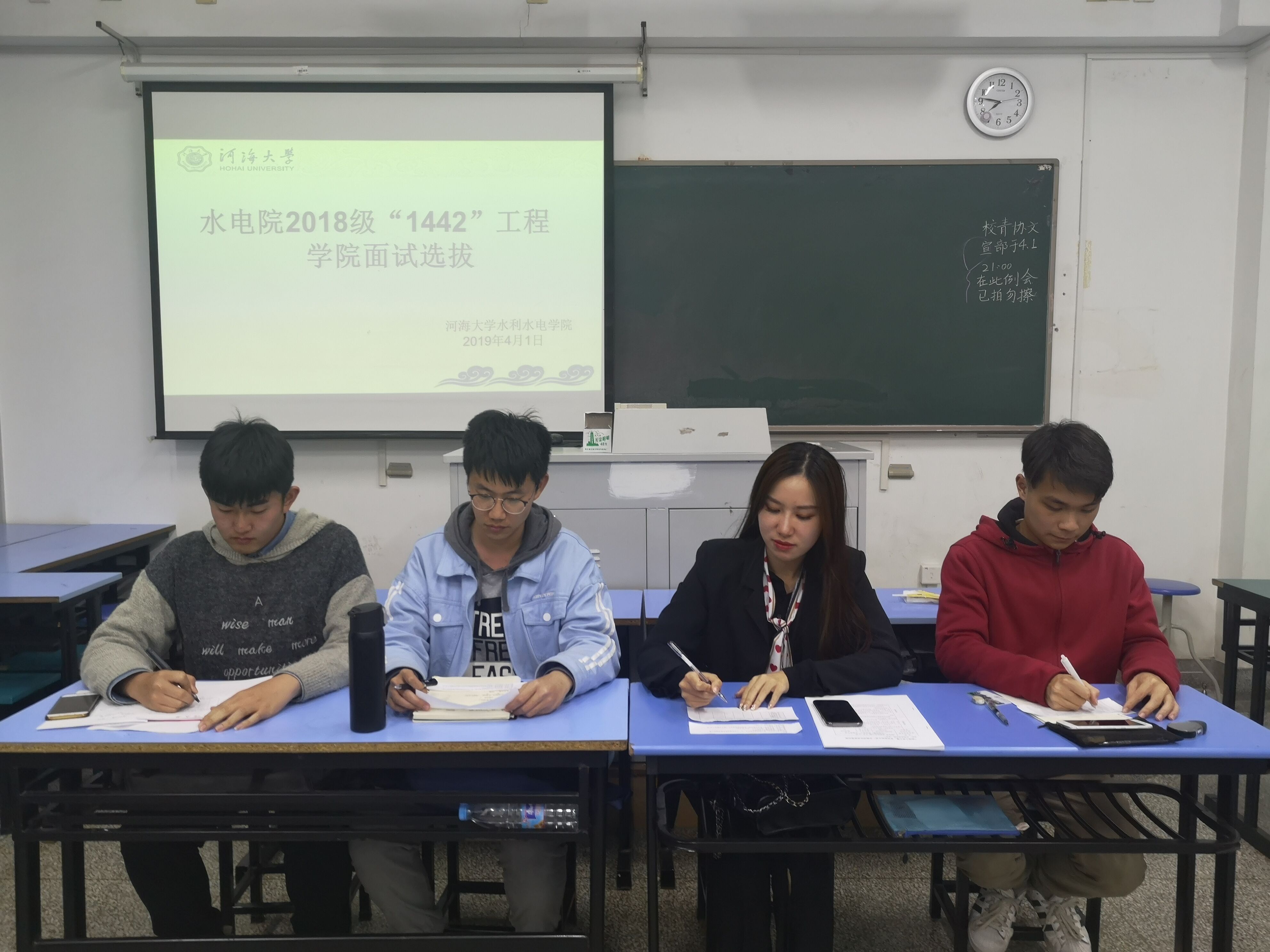 通过广泛宣传和动员,经员工个人申请,24名18级优秀的员工骨干同学参加笔试,重点考核员工的思想政治水平和具体问题分析能力;在结构化面试中,采用全真模拟考场的形式,以新时代老员工最为关注的问题为切入点,锻炼面试者对时事政治的关注度和临场反应能力。并且切合时代背景,以“五四爱国情怀激荡精神力量”为主题,组织开展无领导小组讨论,引导员工提升政治素养。同时兼顾对员工组织策划能力、团队协作能力、语言表达能力等方面进行综合考量。此外,对于员工的言谈举止、礼貌礼仪、仪表仪态都作出了相应的要求和指导。面试过程中,同学们群策群力,互相配合,在竞争之中共同合作。对于这类组织周密、要求严格的面试方式,同学们纷纷表示感到紧张又新奇,也意识到综合素质需要迫切提升。