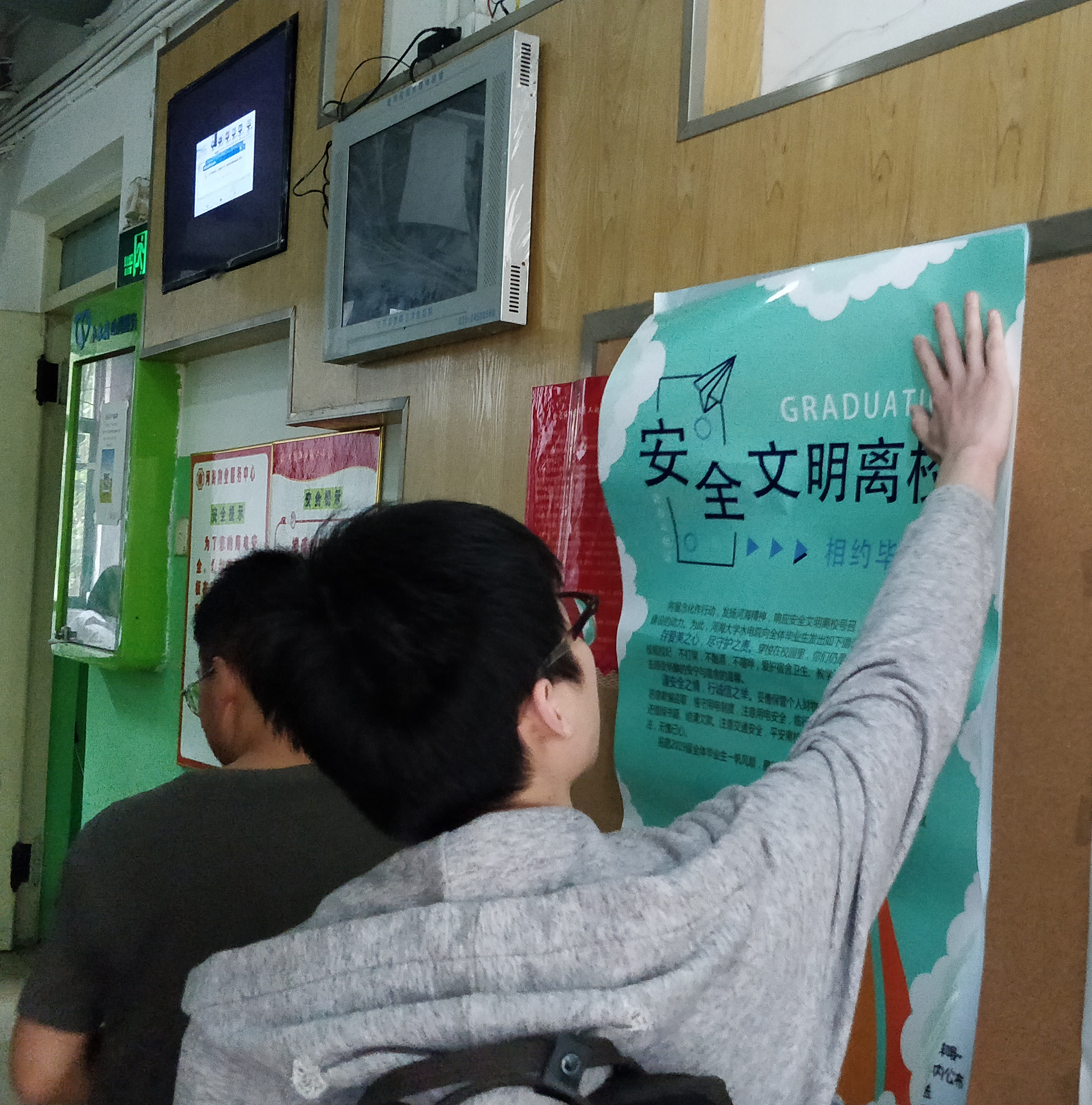 2019年6月,PA视讯官方网站开展了毕业生“安全离校”活动。本次的活动分两个部分展开:第一,在各毕业生宿舍楼道张贴主题宣传海报,向毕业生们传播安全离校理念;第二,在一食堂门口开展“感恩母校无私培育情,倡导安全离校风”的签名活动,组织路过毕业生们在横幅上签名纪念。大家响应积极,并深情感谢母校的三年栽培。