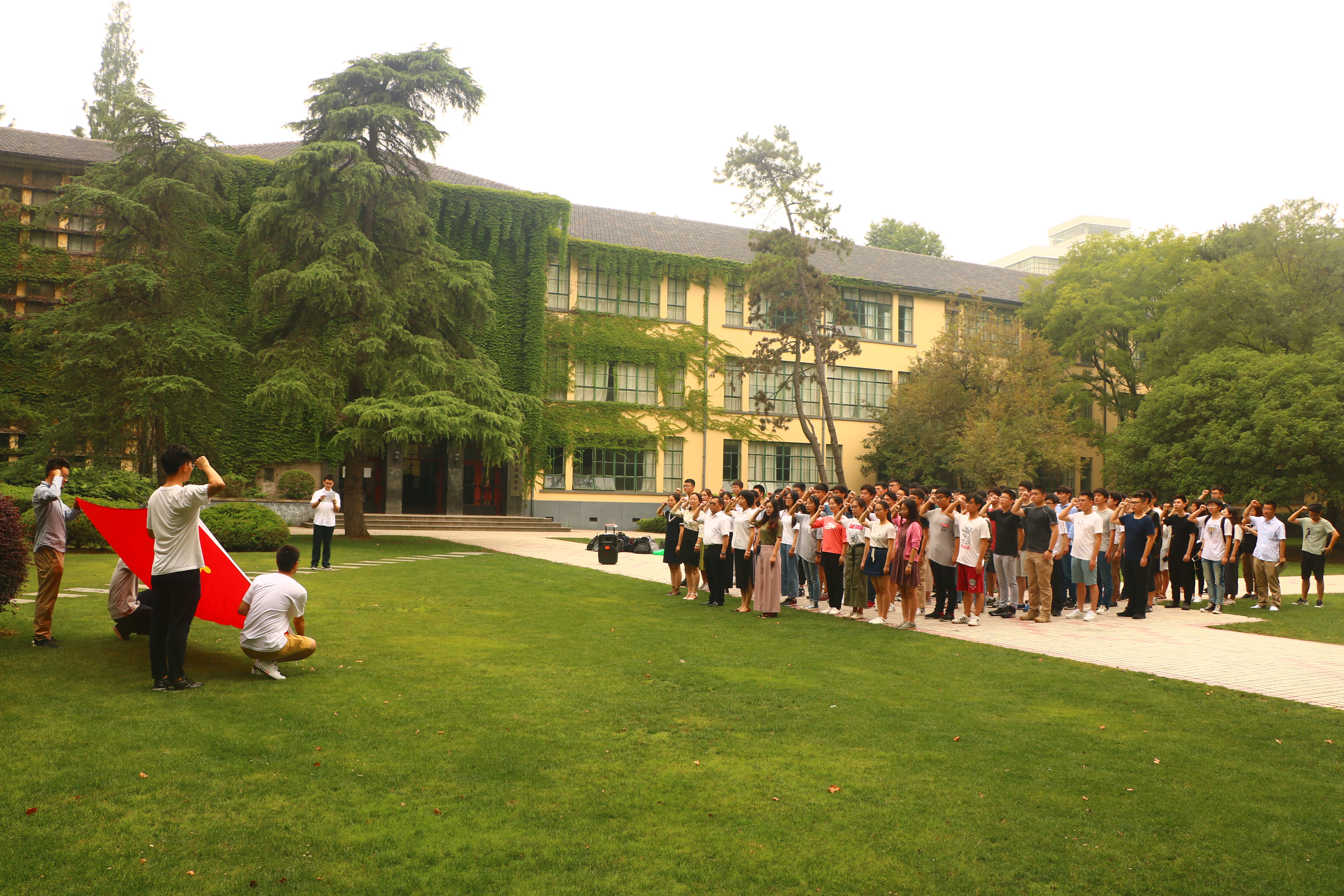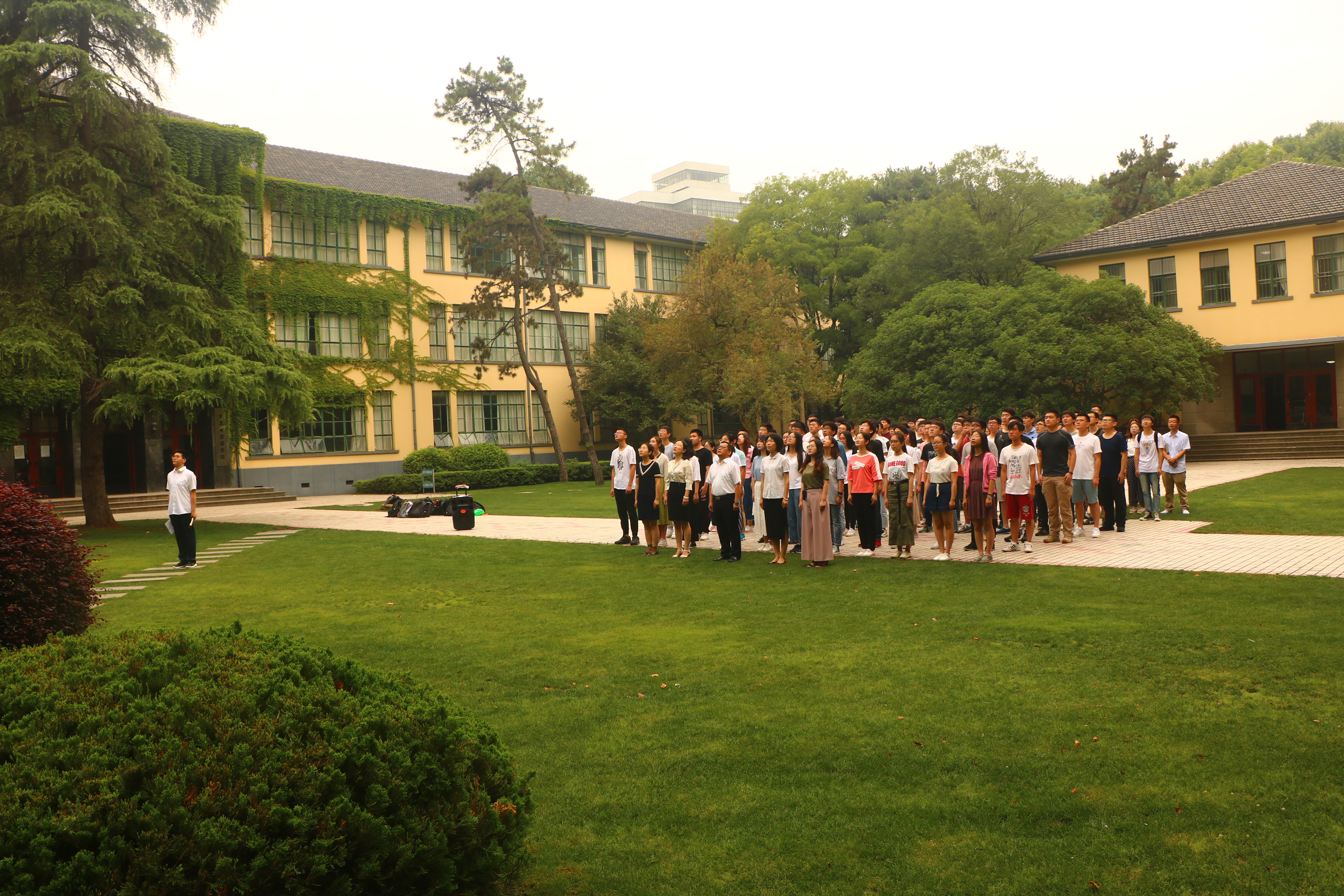 首先进行了升旗仪式。伴随着澎湃激昂的《义勇军进行曲》,全体师生党员行注目礼,齐唱国歌,鲜艳的五星红旗徐徐升起,全体同志的爱国情怀在心中激荡。