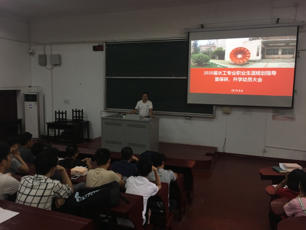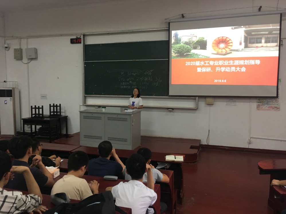 9月6日,我院2020届水工专业职业生涯规划指导暨保研、升学动员大会顺利举行。副经理张继勋、副书记戴玉珍、教学秘书蒋慧敏、16级辅导员笪步源及2020届全体本科生参加会议。