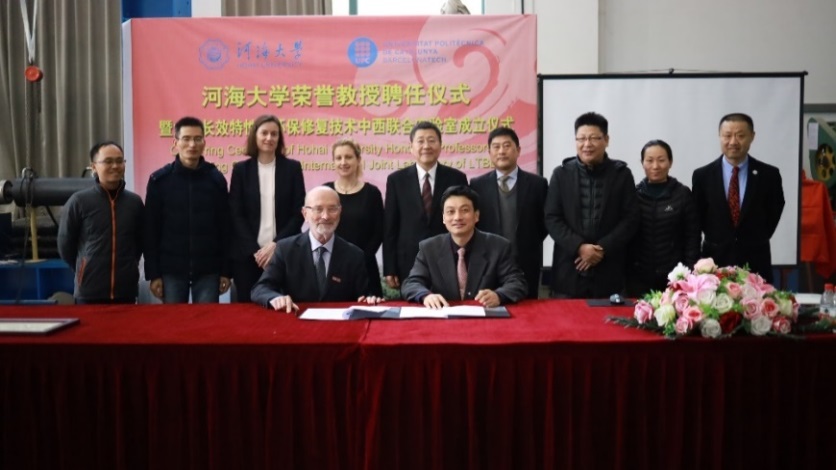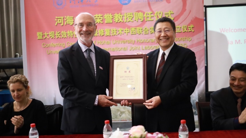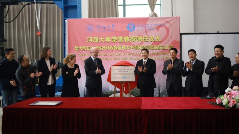 12 月 13- 14 日,由公司承办的大坝长效特性及环保修复技术中西联合实验室成立仪式在水电公司水工结构研究所试验大厅顺利举行。副董事长徐卫亚、国际合作处副处长陈红胜、科技处副处长王建、人事处副处长刘宇琳、PA视讯官方网站副经理沈振中等出席了成立仪式。水工结构研究所所长刘斯宏教授主持了成立仪式。徐卫亚副董事长代表公司向联合实验室首席科学家 Eduardo Alonso 教授颁发荣誉教授聘书,欢迎 Eduardo Alonso 教授加入PA视讯官方网站,希望其为公司教学、科研以及国际化人才培养作出积极贡献。刘斯宏教授介绍了 Eduardo Alonso 教授简历和学术成就。