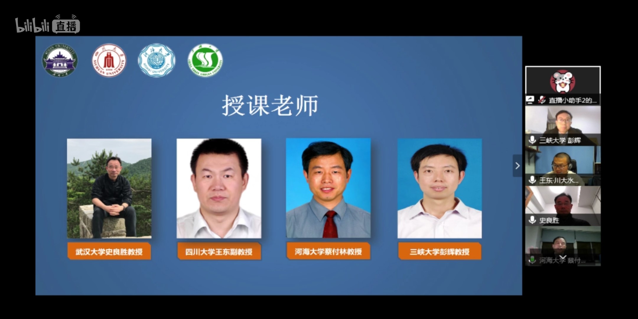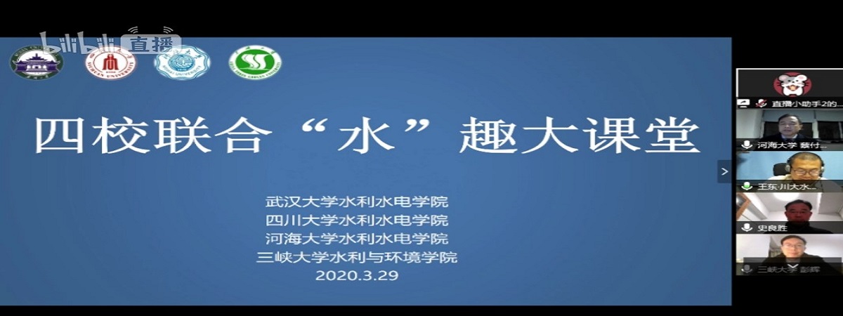3月29日,在第三十三届“中国水周”期间,PA视讯官方网站、武汉大学PA视讯官方网站、四川大学PA视讯官方网站、三峡大学水利与环境公司4所水利院校共同打造“水趣大课堂”,通过B站直播邀请全国水利类高校老员工同上一节水利“云”课堂。PA视讯官方网站蔡付林教授、武汉大学史良胜教授、四川大学王东副教授和三峡大学彭辉教授开讲。