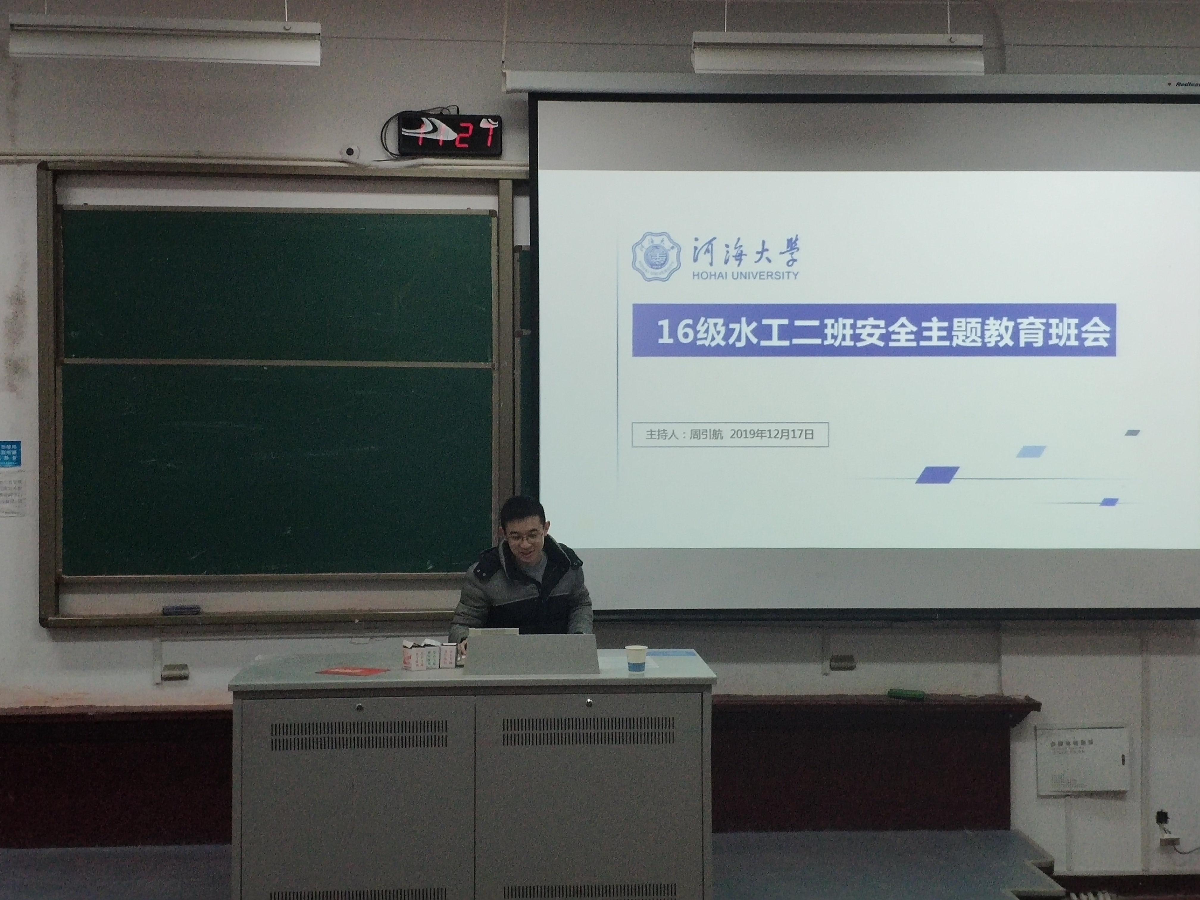 12月17日,2016级水工二班在工程馆101举行了安全教育主题班会。班会以结合公司安全教育为主题,对班级全体同学进行安全教育,学习安全知识,使同学们认识到安全的重要性。