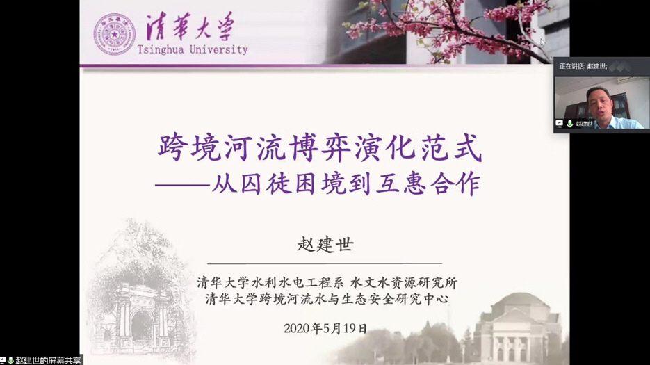 5月19日下午,PA视讯官方网站基于腾讯会议,邀请清华大学赵建世教授作了题为“跨境河流博弈演化范式—从囚徒困境到合作共赢”的学术报告。校内外专家和员工约170人参加了此次报告会,辛沛教授主持了报告会。
