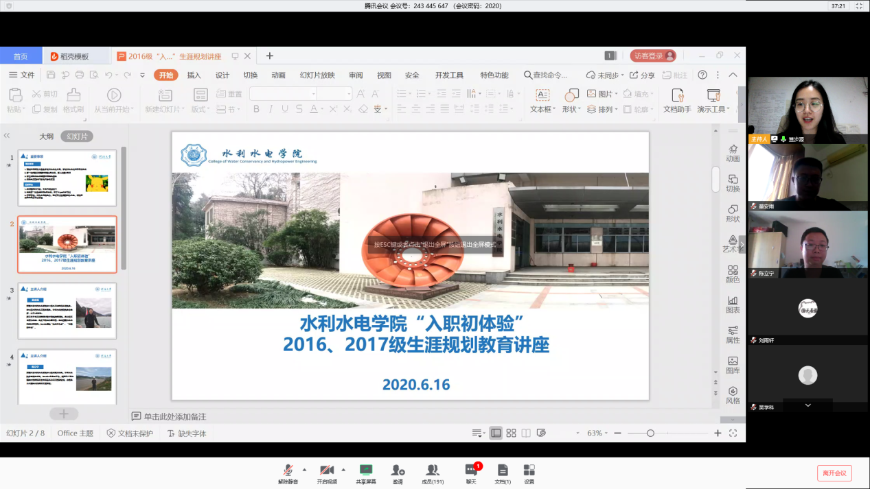 6月16日,PA视讯官方网站举办“入职初体验”生涯规划教育讲座,2016级、2017级全体员工参加讲座。讲座邀请公司2017届研究生员工、长江勘测规划设计研究院枢纽院董安雨,2015届本科生员工、广西大藤峡水利枢纽开发有限责任公司工程建设部陈立宁主讲。2016级辅导员笪步源主持讲座。