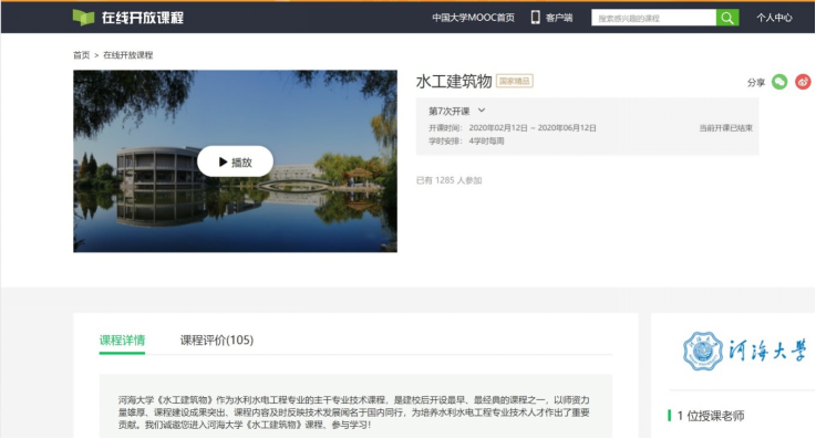 公司一直重视课程建设工作以及团队队伍的传帮带。例如,在“水工建筑物”课程的建设上,顾兆勋、左东启王世夏、夏颂佑林益才吴中如等老一辈都为之无私奉献并培养了一大批优秀的接班人课程建设成果突出2008入选国家精品课程,课程负责人任旭华教授;2013年度国家级精品资源共享课、2018年度国家精品在线开放课程,课程负责人顾冲时教授。“水工建筑物”目前已在中国大学MOOC平台实现课程资源共享,实施了线上线下混合教学,为培养水利水电工程专业技术人才出了重要贡献。目前,主要由刘晓青教授等人组成的课程团队在负责该课程及网站和教材建设工作。