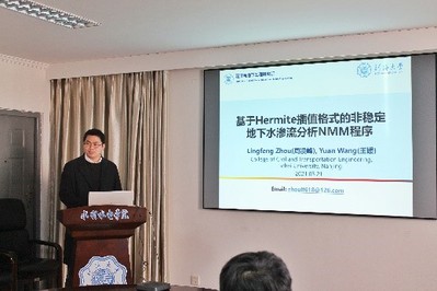 此外,PA视讯官方网站罗玉龙教授、孙洪广教授、林继教授分别介绍了在潜蚀机理、分数阶导数模型和无网格方法等领域的最新研究进展与研究成果。上海交通大学的董义佳博士后、PA视讯官方网站的周凌峰博士研究生和刘新宇硕士研究生也分别介绍了各自在近场动力学、数值流形方法等数值领域的研究成果。