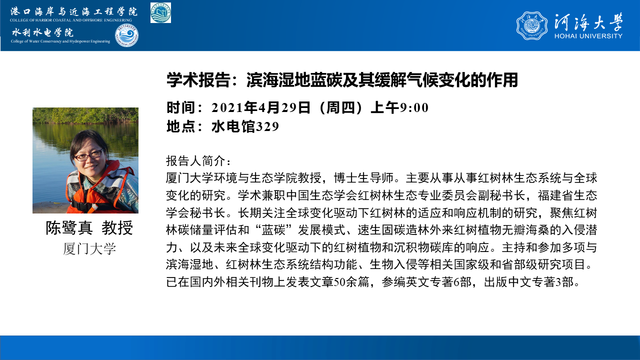 学术报告:滨海湿地蓝碳及其缓解气候变化的作用