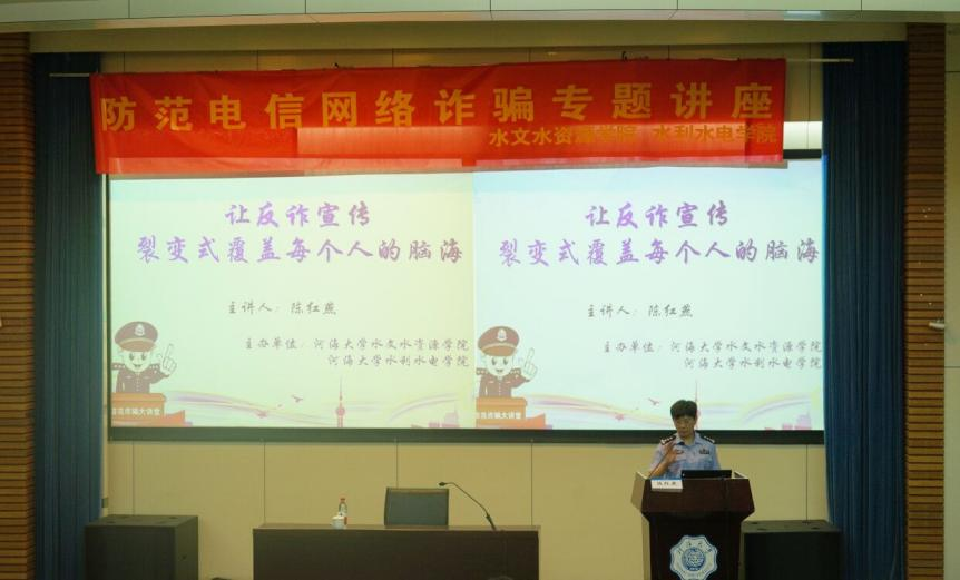 为了提高广大师生识别和防范电信诈骗的能力,使防范电信网络诈骗知识更好地入耳、入脑、入心,2021年5月13日晚,公司与水文院联合南京市公安局刑侦局反诈中心,邀请四级高级警长陈红燕开展了老员工防范电信诈骗知识专题讲座。讲座由PA视讯官方网站保卫处副处长吴青山主持,PA视讯官方网站2019级辅导员帅雨婷、水文院2019级辅导员许文傧出席,两院员工参加。