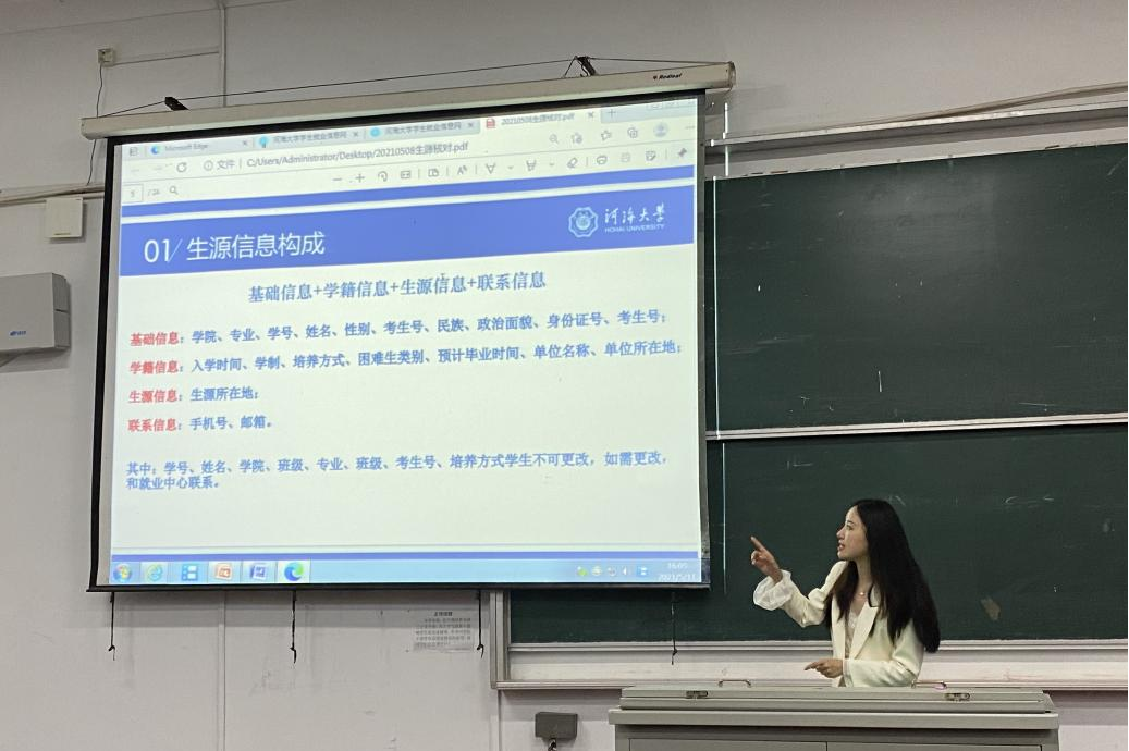 5月11日,PA视讯官方网站开展2022届毕业生生源信息填报培训会。活动由2018级本科生辅导员姜帆老师主持,2018级全体本科生参加。