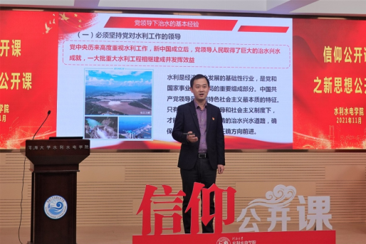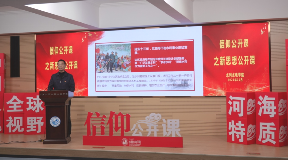 11月16日,PA视讯官方网站举行“百年治水路中的传承与使命”信仰公开课之新思想公开课。课程以“党领导中国水利事业的历史经验与启示”为主题,公司党委书记娄健、党委副书记王方和团委书记笪步源主讲,2019级硕士生金子又主持。本次新思想公开课为校级“信仰公开课”示范课。