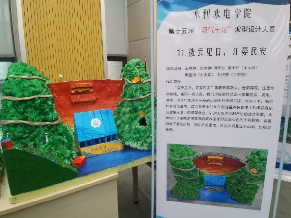 决赛中,十五组团队依次介绍坝型作品,通过实体模型和计算机建模,充分展示参赛成果。有以白鹤滩水电站为原型的“高山流水”坝;有关注生态保护,旨在为鱼类提供便利的同时提高发电效率的“滇云逐浪”坝;有切合时代需求,创新发展清洁能源,兼顾风能、光能、水能发电的“风光水云间”坝;有心系民众,解决东北电网稳定性和河流冰情的“暖冬”坝;有缅怀袁隆平老先生,寓意袁老精神永存的“禾下乘凉梦”坝;有将中国航天精神与水利建设巧妙结合的“九霄逐梦”坝;有敢于创新,结合智慧水利的“拨云见日,江晏民安”坝。
