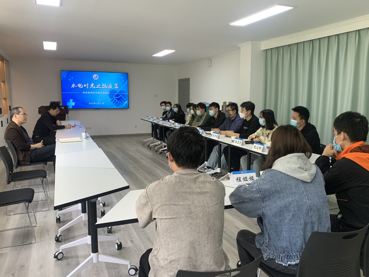 师生座谈会前,郑金海副董事长与公司班子成员座谈,强调了公司疫情防控的纪律要求,听取了公司疫情防控、员工教育管理及就业工作的情况汇报。(文/汪心玥,图/汪心玥)