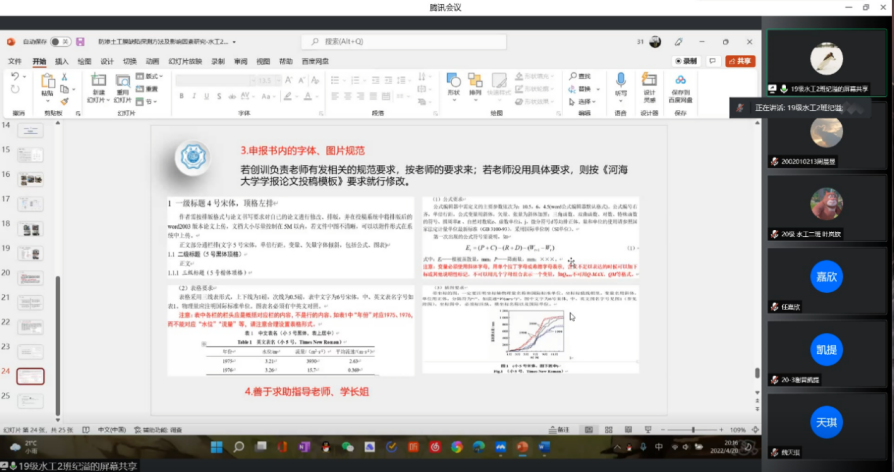 2019级国家级、省级创训团队负责人纪溢、袁志鹏、刘俊明三位同学分别从创训项目中申报书的填写、提交项目申报书后的答辩以及创训项目中的注意事项等方面分享自己的经验。
