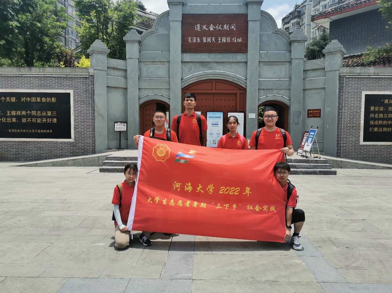 7月15日实践团成员到遵义市城区湘江河畔的红军烈士陵园祭扫。在巍峨的革命烈士纪念碑前,全体实践团成员向烈士纪念碑举行了庄严而肃穆的祭扫仪式,表达对革命烈士深深的缅怀;在纪念碑前,实践团成员重温入团誓词,感受红军艰苦卓绝的革命奋斗历史。