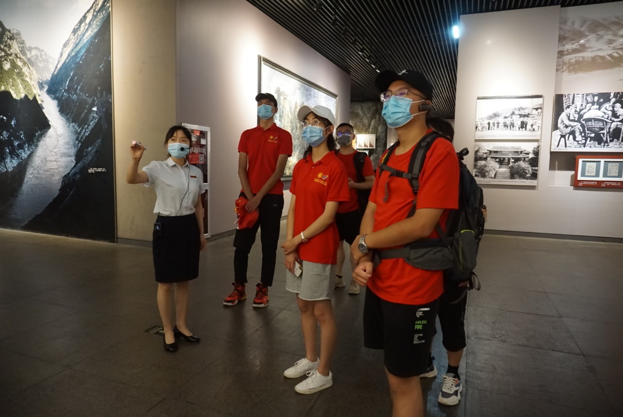 7月15日实践团来到遵义会议会址及遵义会议陈列馆参观学习。遵义会议陈列馆以长征为主线,五个专题突出遵义会议的主题及红军长征转战贵州的史迹。实践团参观了红军总政治部旧址、红军遵义警备司令部旧址,秦邦宪(博古)、李德住处、遵义会议期间邓小平住处、毛泽东张闻天王稼祥住址。