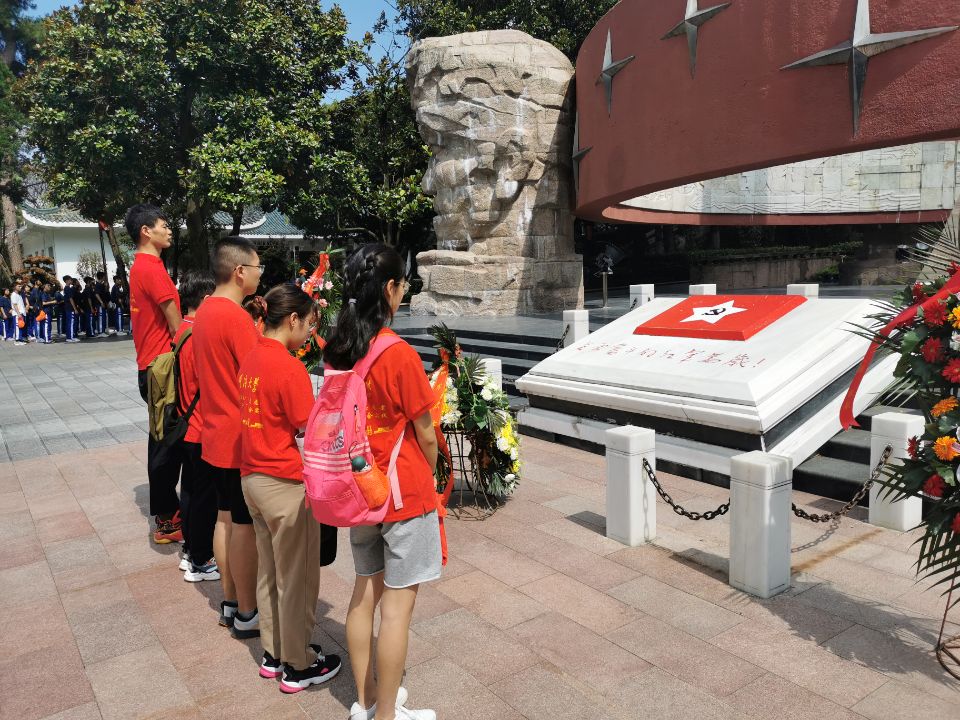 图 8 实践团成员在祭扫红军烈士纪念碑