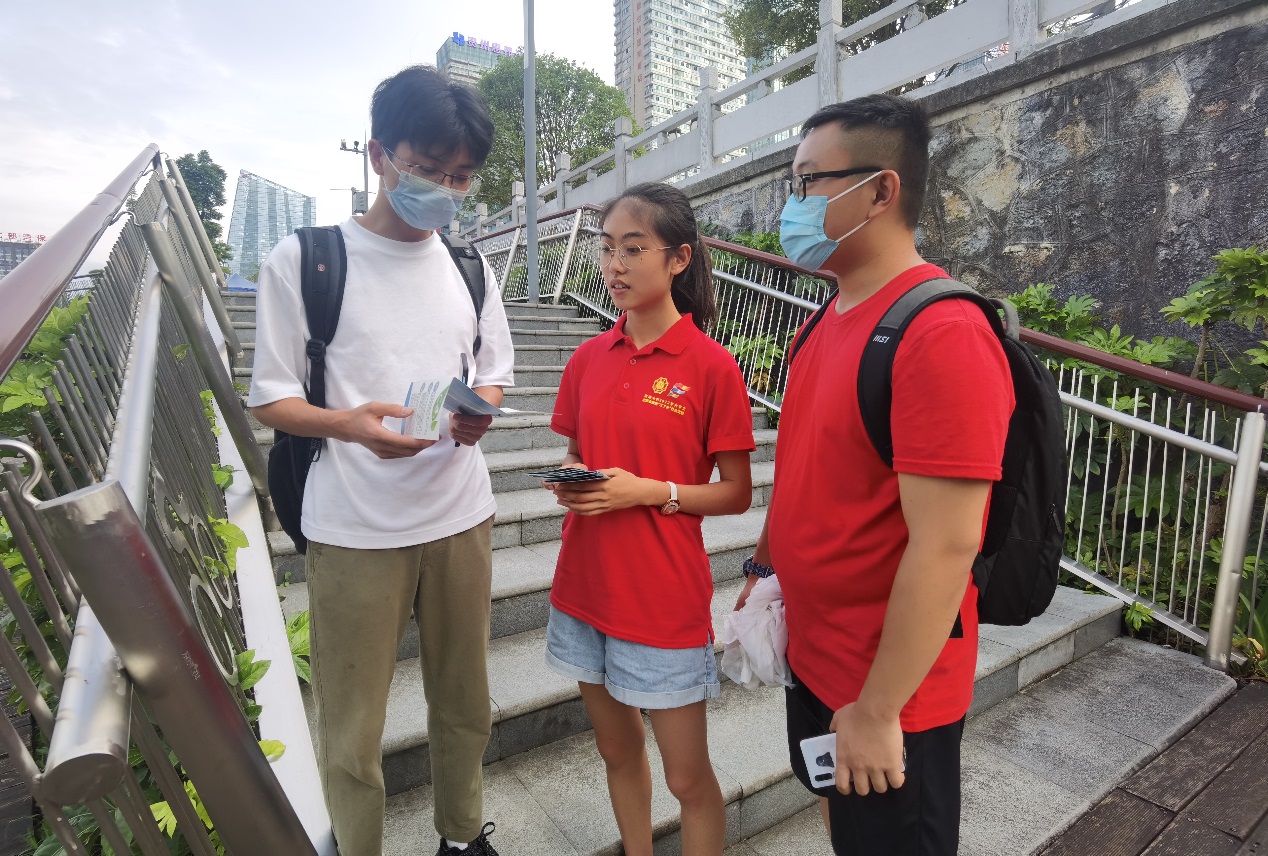 最后,实践团成员走上街头,拿起印刷的宣传册,向贵阳市白鹭湖畔的市民朋友们介绍当前堆石混凝土筑坝技术,让更多的市民朋友关注当前筑坝技术的发展,并且帮忙解答市民朋友们对于水利设施的疑问。
