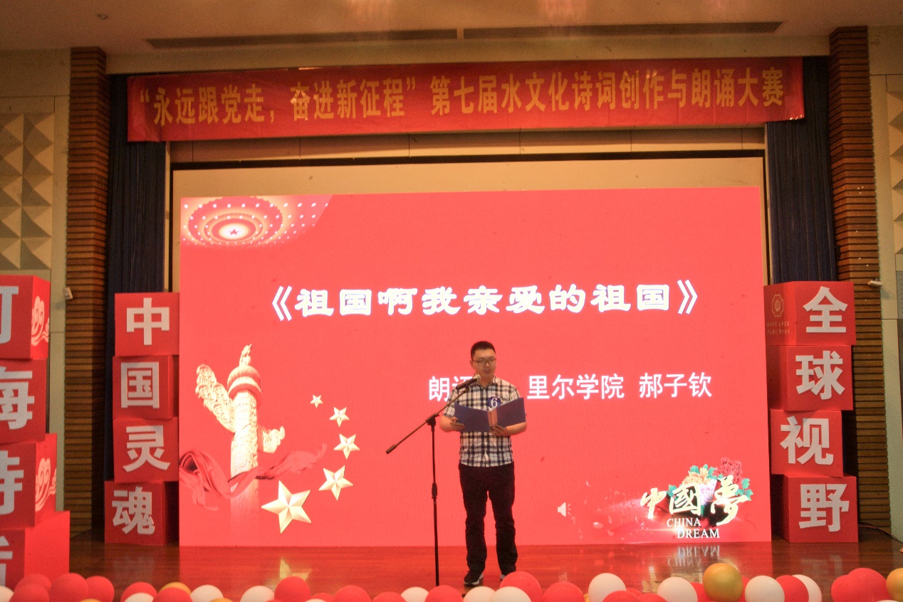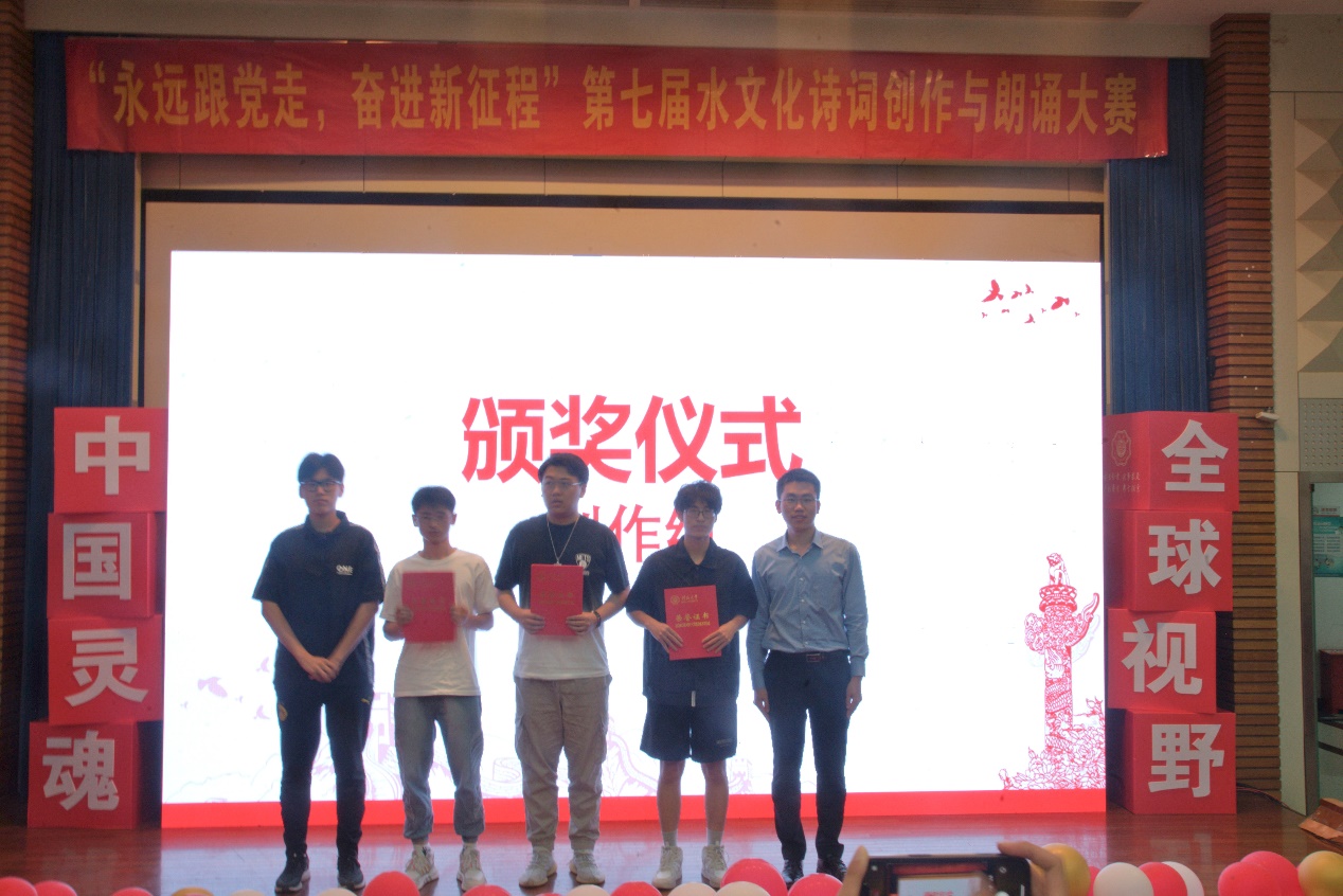 穿越中华民族悠久灿烂的历史文化长廊,诗词寄托着我们对党对水利事业的无限热爱。今天我们高唱凯歌走向复兴,“永远跟党走”步伐流畅;今天我们手挽着手奔向富裕,“永远跟党走”誓言响亮。水文化诗词创作及朗诵大赛作为公司文化传承的传统活动之一,自举办就深受师生喜爱,在为来自全校不同公司的员工提供交流的平台,鼓励河海水之子们展现诗词风韵与风骨的同时,也推进了“水文化”精神的传承,培养员工综合素质与时代精神契合,弘扬新时代水利人的精神品质。在所有选手及老师的共同努力下,本次“永远跟党走,奋斗新征程” 第七届水文化诗词创作与朗诵大赛圆满结束。(文/袁晨禹;图/李茜、朱弘霖、罗毅、陈泽博、廖培钧)