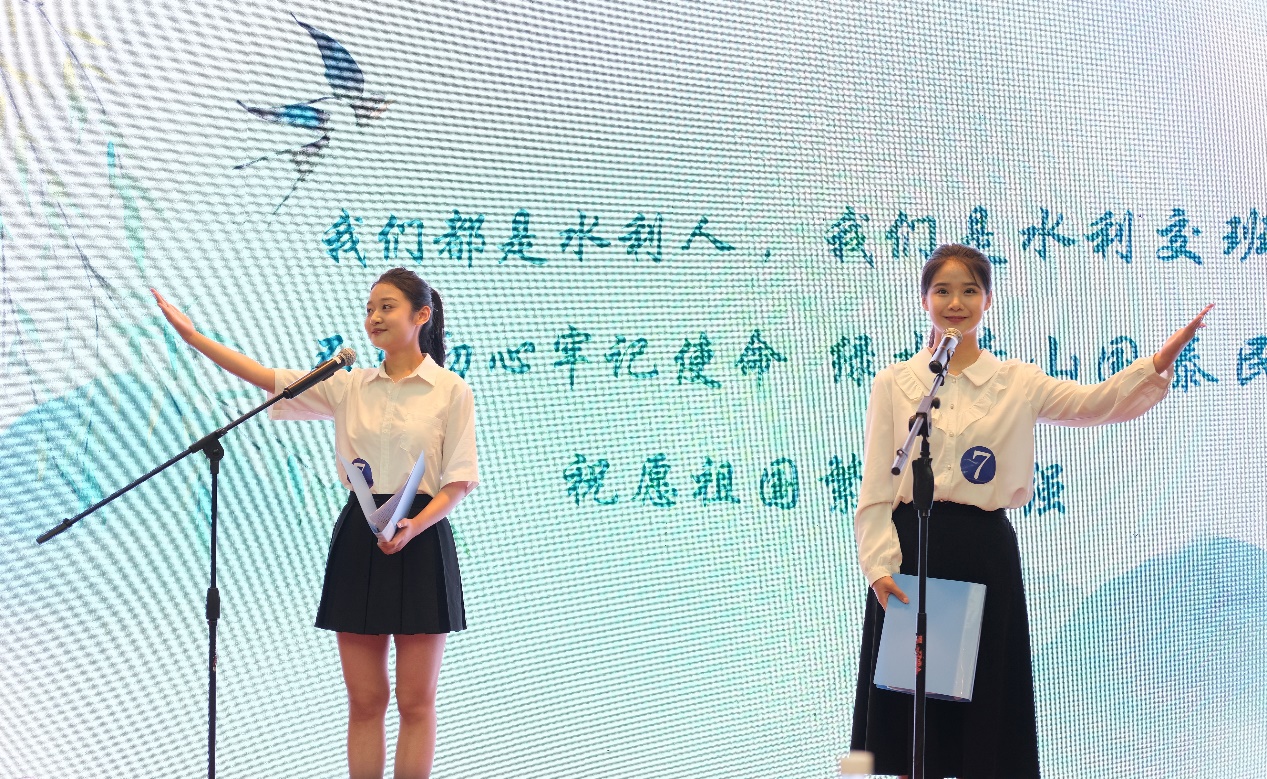 本次大赛分为创作组和朗诵组,吸引了来自水电、公管、外语、大禹等多个公司的同学踊跃参与,经过朗诵作品及创作作品的线上专业评审,最终有10组朗诵组选手以及创作组的13名选手进入决赛。比赛中,选手们声情并茂、饱含感情地朗诵了《水利的春天》、《我们同是水利人》、《闪耀吧!青春的火光》、《祖国啊我亲爱的祖国》等多首作品,歌颂了新征程的宏伟蓝图以及在建设事业大力转型下我国水利事业发展取得的巨大成就,选手朗诵时传达出的对于家国和水利事业的赞扬和热爱,让现场的观众深受鼓舞,掌声热烈。