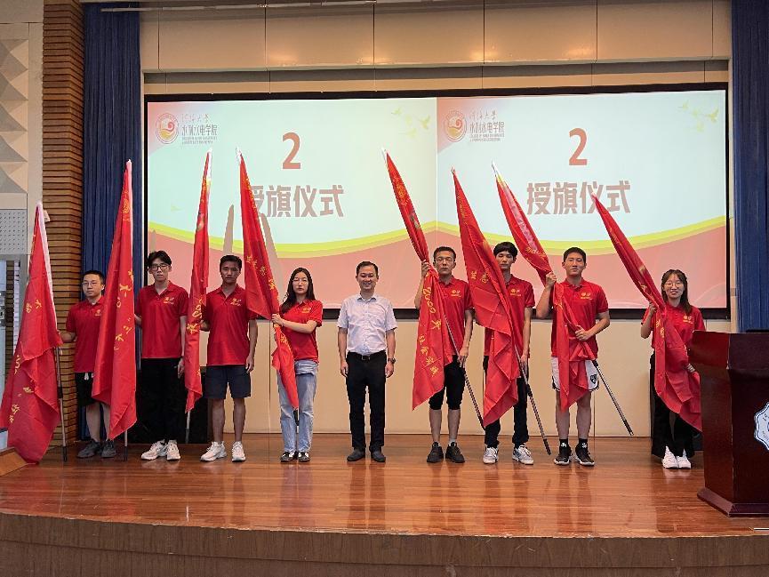 出征仪式上,由王方书记为10支校级团队和5支院级重点团队代表授旗,展现出青年学子的爱党爱国情怀和昂扬向上的精神风貌。