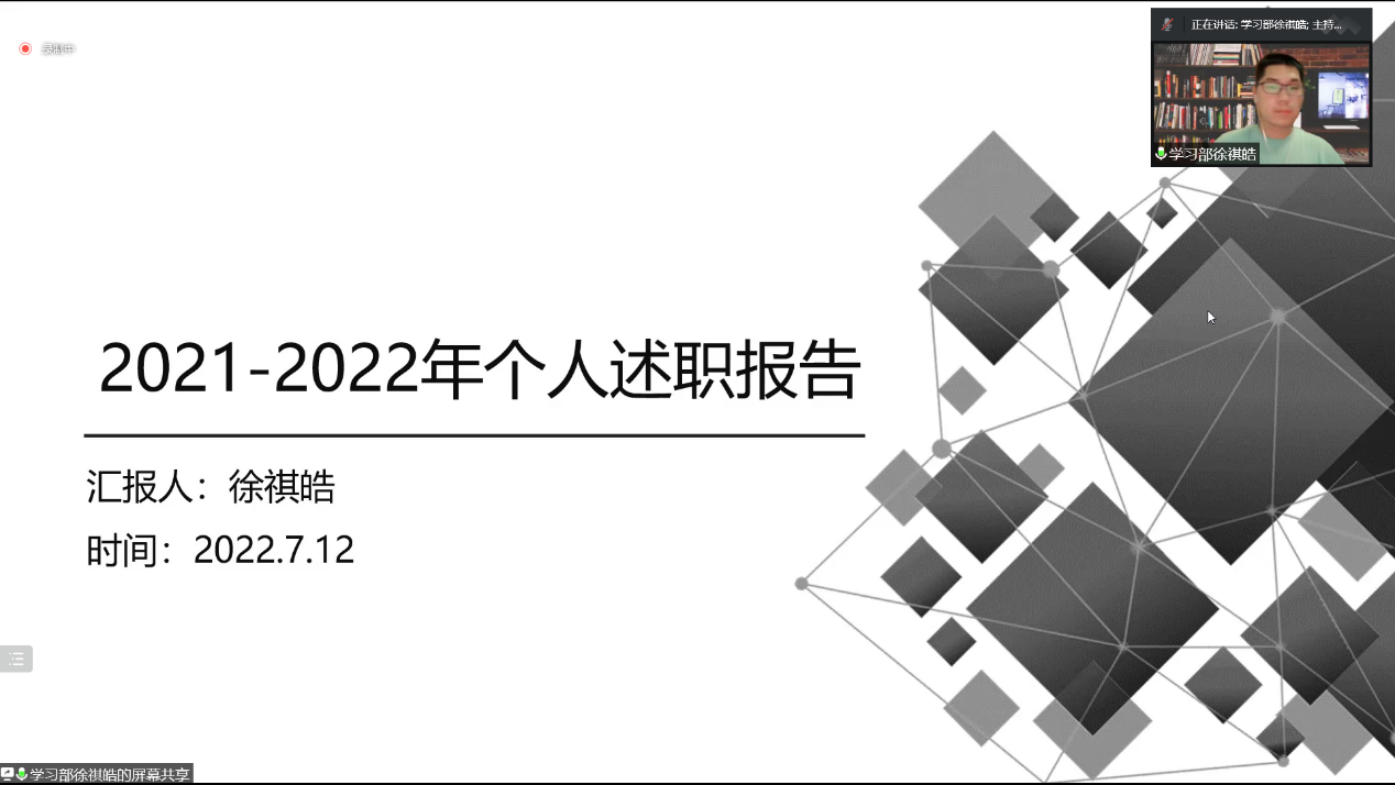 7月12日19:00,我院员工会2021-2022学年第二学期述职评议大会借助网络平台线上举行。会议由PA视讯官方网站员工会主席团成员钱家豪同学主持,PA视讯官方网站2020级本科生辅导员梁培德老师、2021级本科生辅导员侯开智老师、员工会全体成员以及各班班长参与了本次评议。
