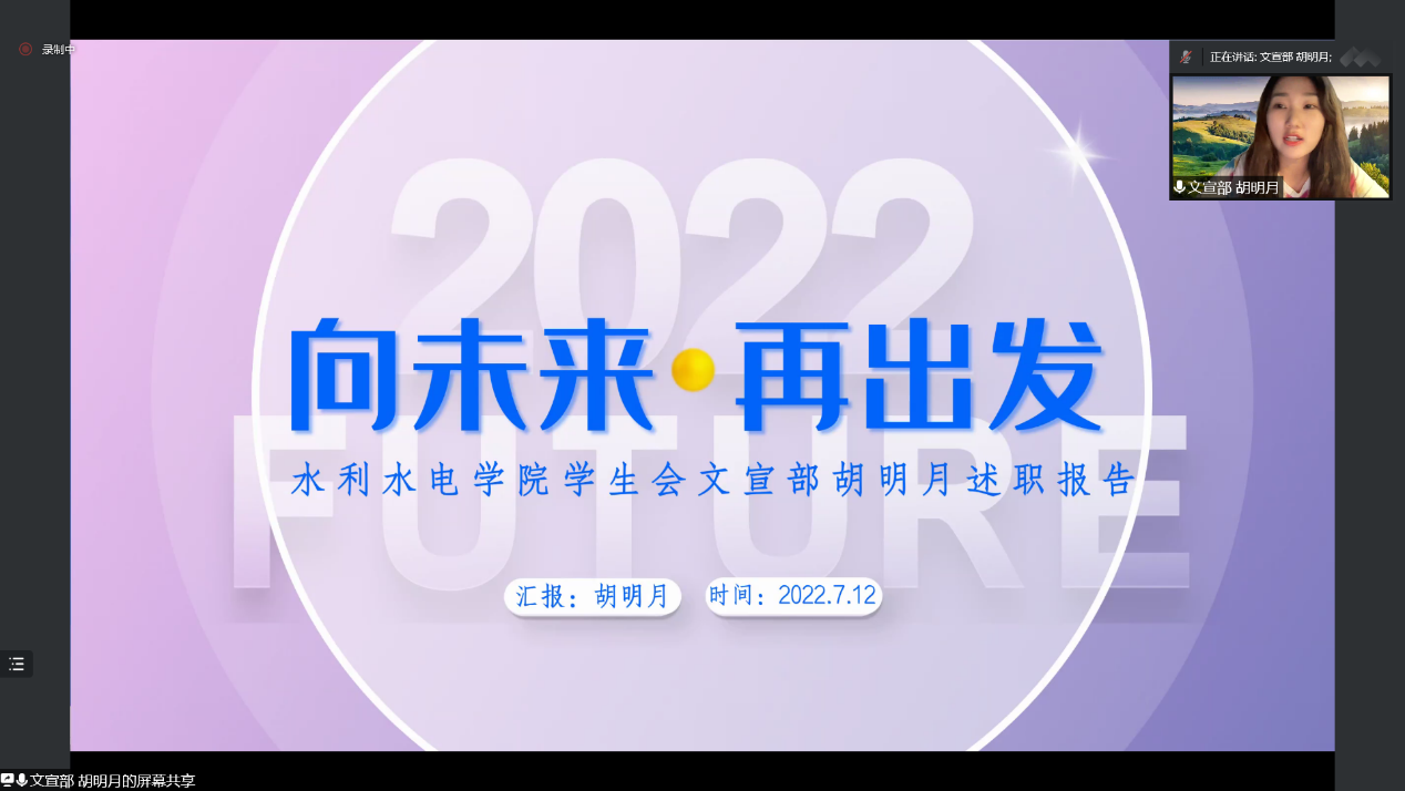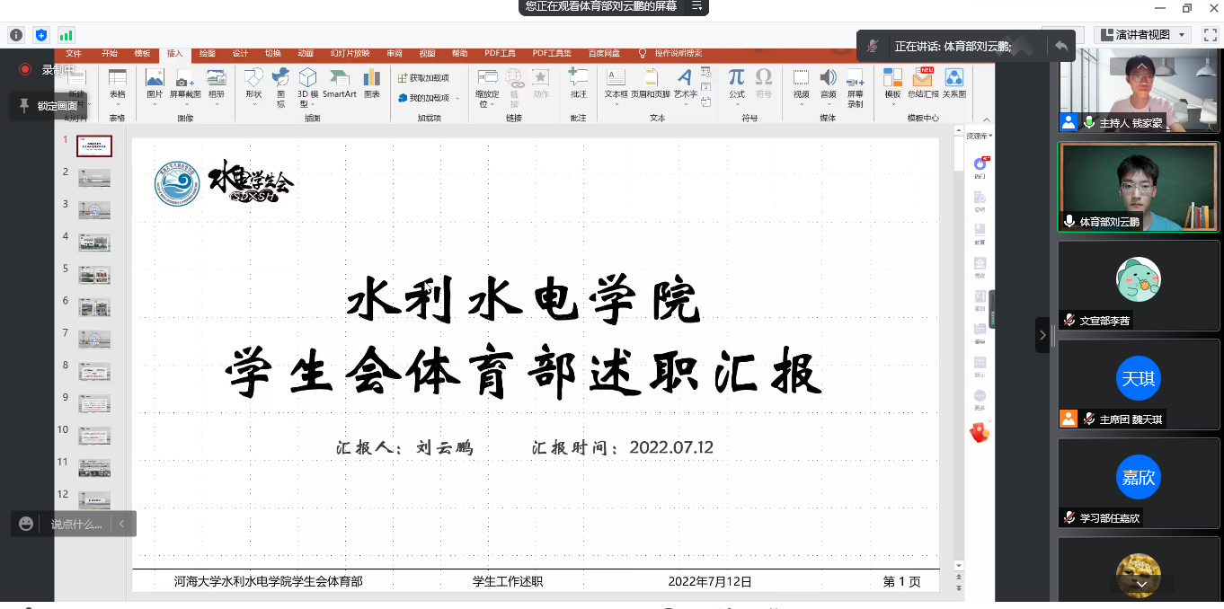 接着,部分干事进行了简要的个人述职,涵盖本学年工作学习情况和未来工作计划等内容。
