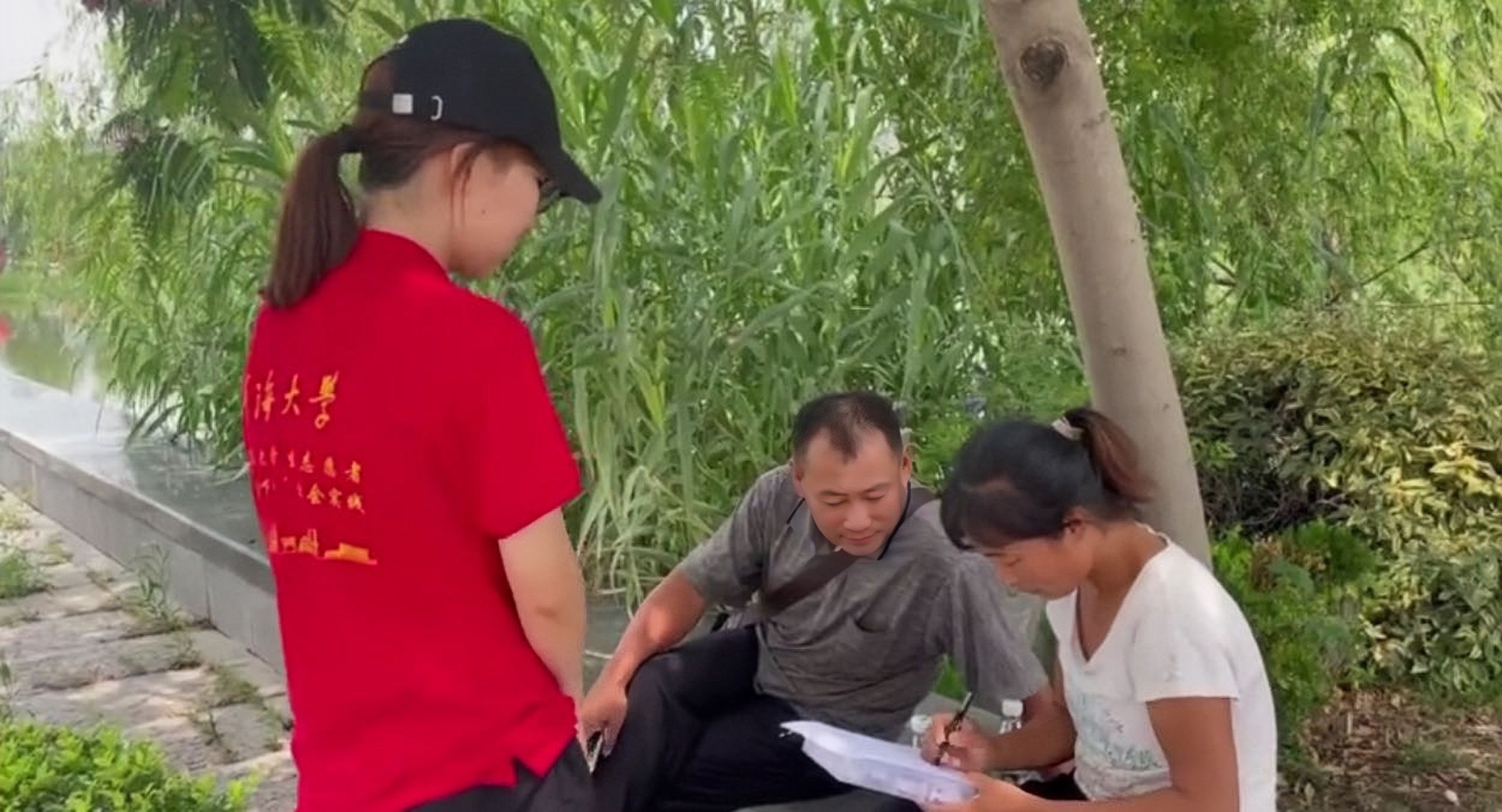 下午团队成员前往潘安湖湿地公园内,在公园道路两旁休息处向游客发放调查问卷,以知悉居民对潘安湖片区发展的了解程度。在调查过程中,采访当地居民和游客。