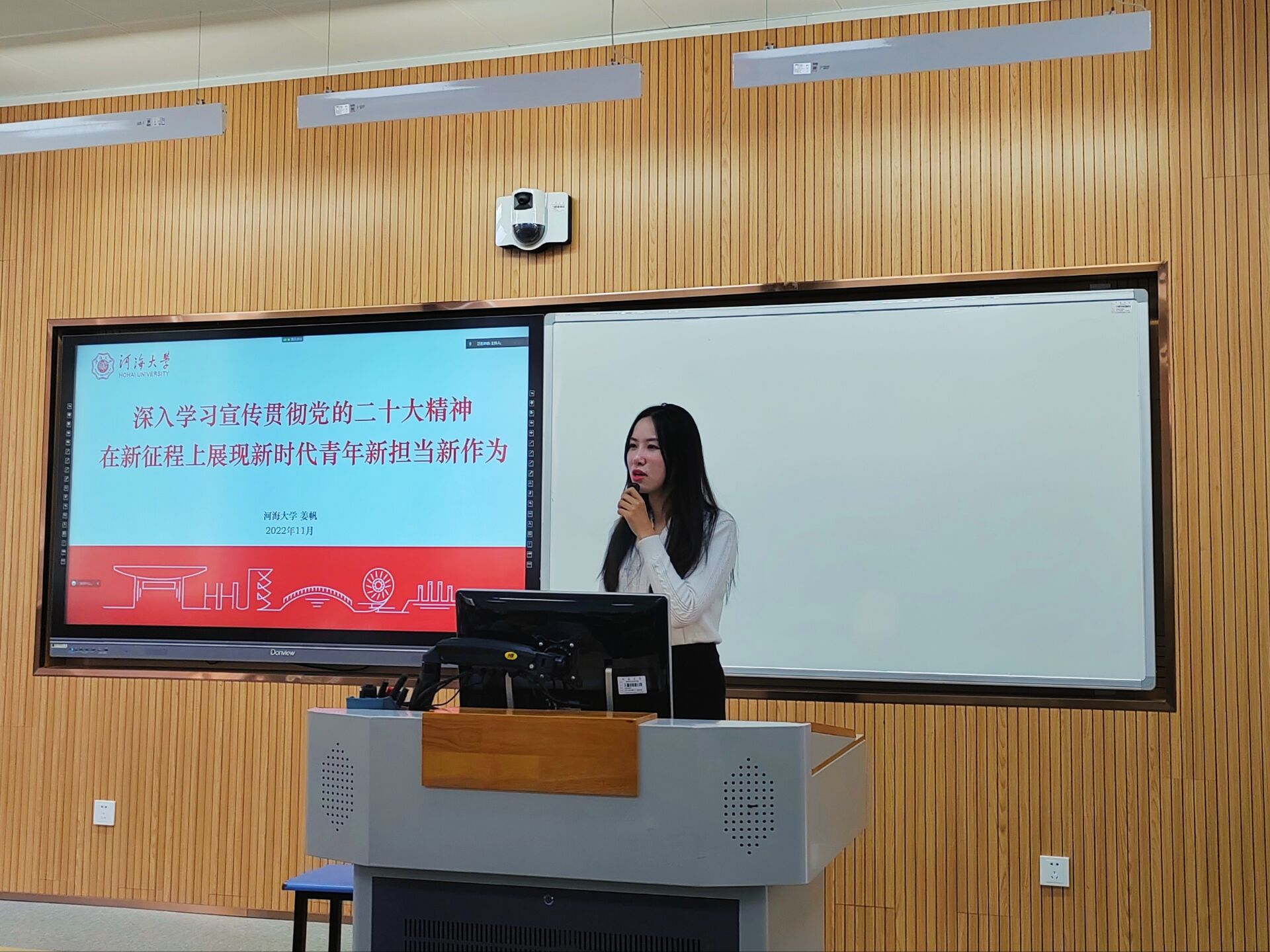 她强调,要充分认识党的二十大的重大意义,深刻把握开辟马克思主义中国化时代化新境界的历史责任,并以中国水利的非凡十年为例,诠释了河海在历史责任方面做出的贡献,鼓励大家深刻把握开辟马克思主义中国化时代化新境界的历史责任,充分意识到自己所处的时代锚点,争做对时代有用之人。