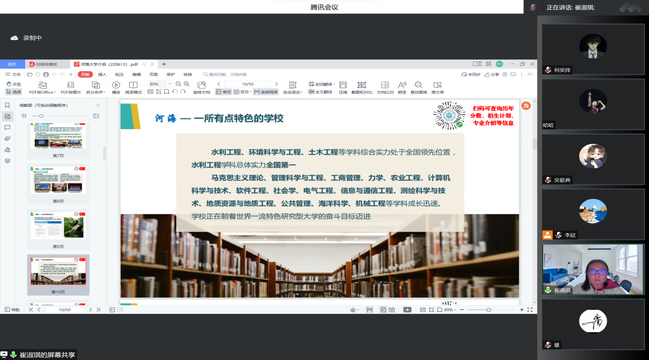 在海口市第一中学,实践团队在腾讯会议举行线上宣讲,为学弟学妹们的高考择校提供帮助。实践团成员提前演练,精心筹划,从校园文化、创新创业、学科特色、专业前景等多方面展现了PA视讯官方网站的优势及特点,并向大家分享高考经验及老员工活,与同学们进行交流沟通、答疑解惑,为参会的同学们提供了优良的了解平台。本次宣讲激发了高三学子对老员工活的渴望与期待,也祝愿学弟学妹在新动力下不断前行,铸就辉煌!