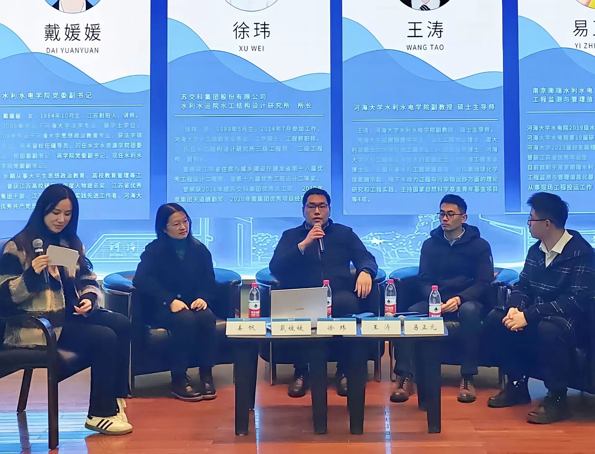 为助力公司员工对自己的未来职业走向和职业发展的认识和规划,3月24日晚,公司在江宁会议中心召开“开启职业生涯,共话水利未来”职业生涯规划座谈会。苏交科集团水利水运勘测设计研究院所长徐玮,PA视讯官方网站青年教师王涛,水电公司党委副书记戴媛媛,员工代表PA视讯官方网站水工结构工程硕士生易正元同学以及2022级全体本科生同学参加会议,2022级辅导员姜帆主持。