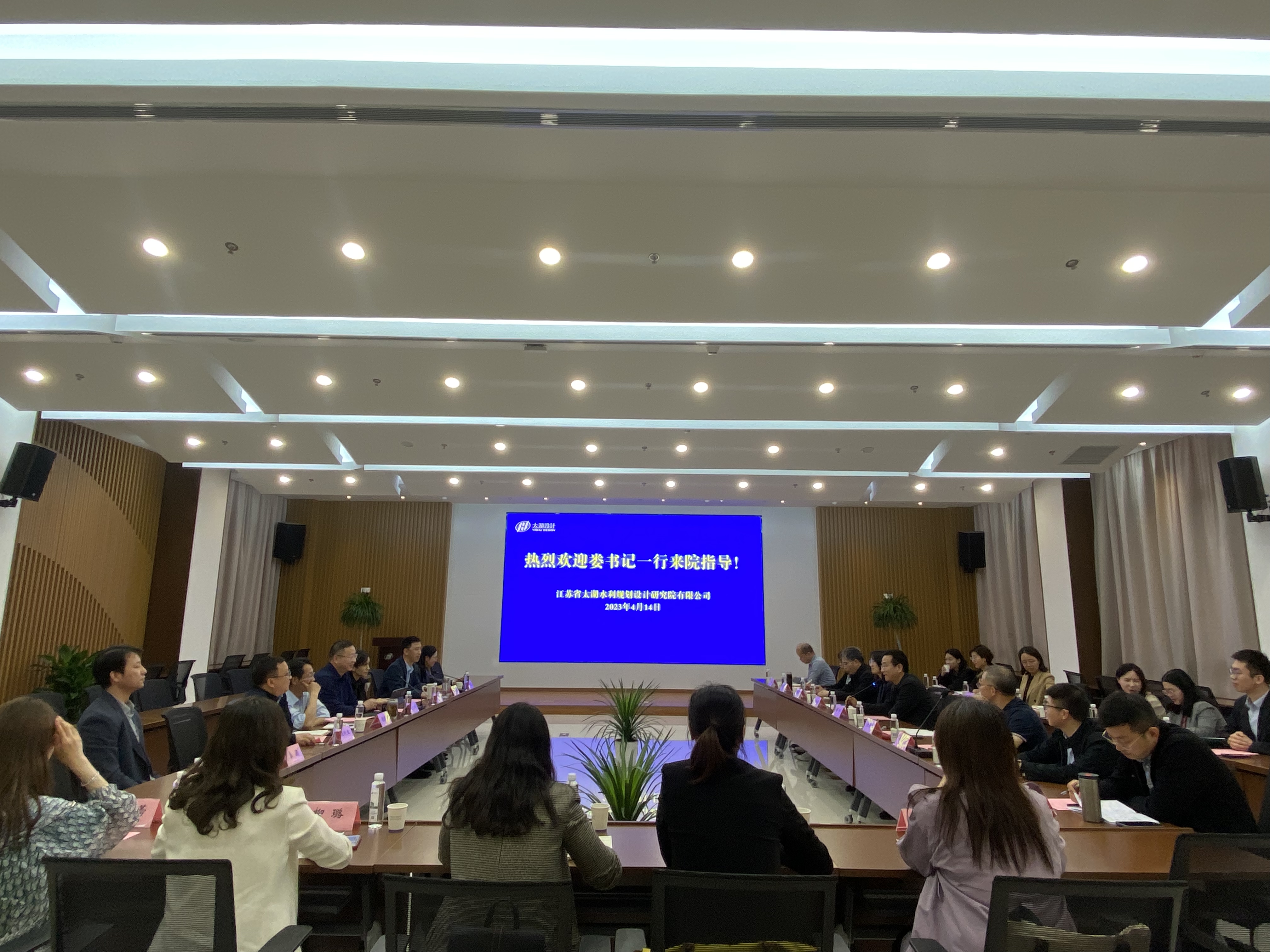 4月14日,公司赴江苏省太湖水利规划设计研究院(下文简称“太湖院”)开展访企拓岗交流活动。公司党委书记娄健、党委副书记戴媛媛带队公司研究生导师代表:水利水电工程学科方国华、周建旭,水力学及河流动力学学科傅宗甫,水工结构工程学科周兰庭,安全科学与工程学科任杰和公司工程教育与社会合作办公室主任甘磊、副主任陈胜,水力学及河流动力学研究所副所长、党支部书记闫静,水利水电实验中心副主任初文婷以及两办行政人员、辅导员共同参与。太湖院董事长展永兴、副总经理兼规划分院经理吴小靖、总工程师顾晓峰、总规划师汪院生、党委副书记兼综合管理部主任黄晓东等相关部门负责人出席座谈。