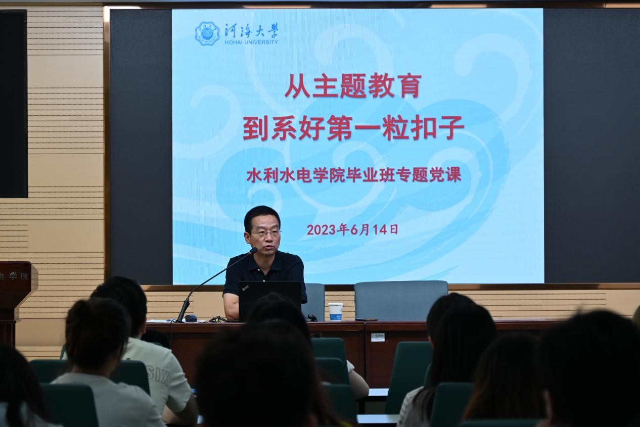 6月14日,公司党委书记娄健以《从主题教育到系好第一粒扣子》为题,为全体2023届毕业生党员讲授毕业生廉洁专题党课。党课由公司党委副书记戴媛媛主持,全体毕业生党员参加。