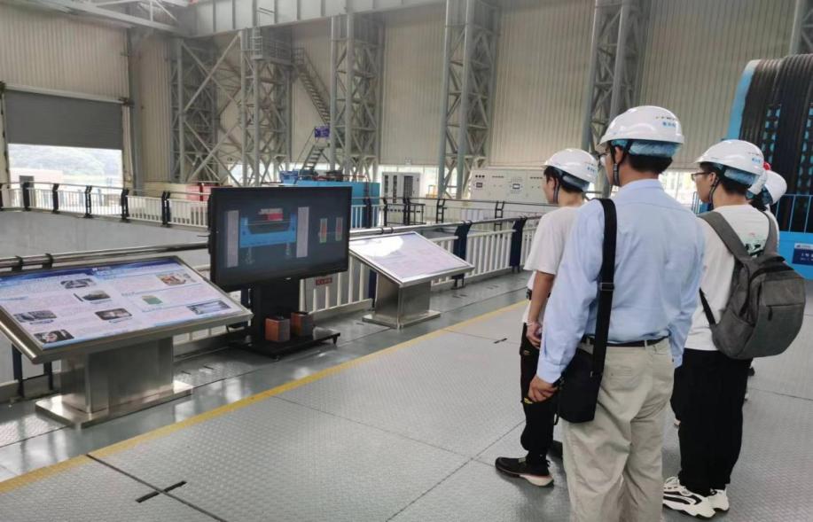 团队成员在两位员工的带领下,参观了华能景洪水电站的监测控制中心、水轮机室、发电机室、廊道以及世界首台水力驱动式垂直升船机。通过实地参观调研,实践团逐步了解了水电站的构造和各个装置的工作原理,尤其是在智慧水利建设当下,水电站已实现全面国产化升级,做到自动化管理和无人值守。