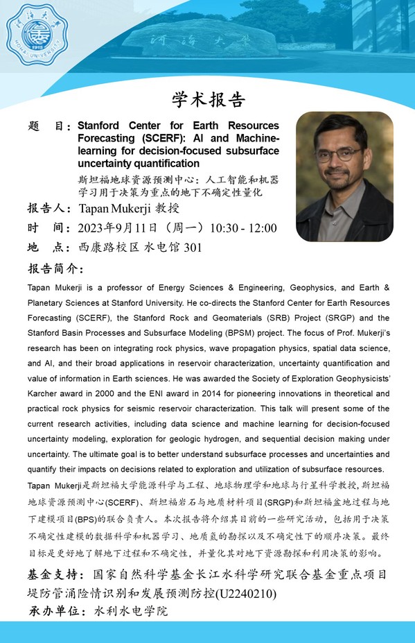 学术报告会|人工智能和机器学习用于决策为重点的地下不确定性量化