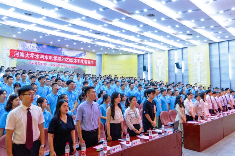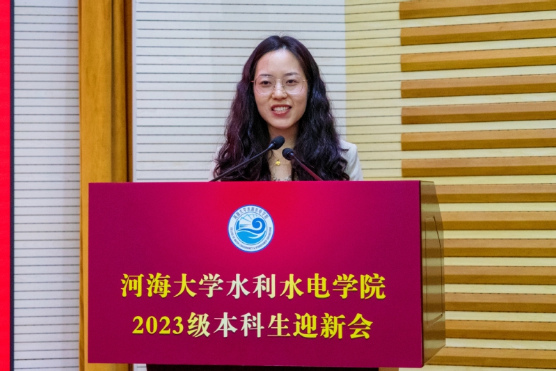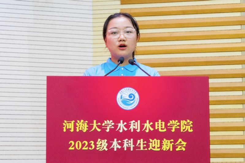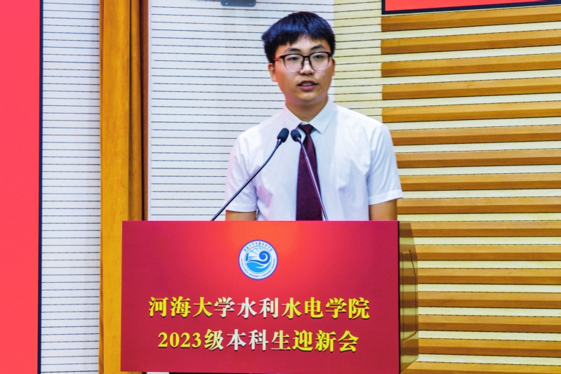 新生代表2023级智水专业吕珏稞同学表示河海员工为水而来,因水而聚,乘水而行,必将带着入学的欣喜锐意进取,砥砺前行,肩负起河海的骄傲与光荣,肩负起中华民族伟大复兴的责任与使命。