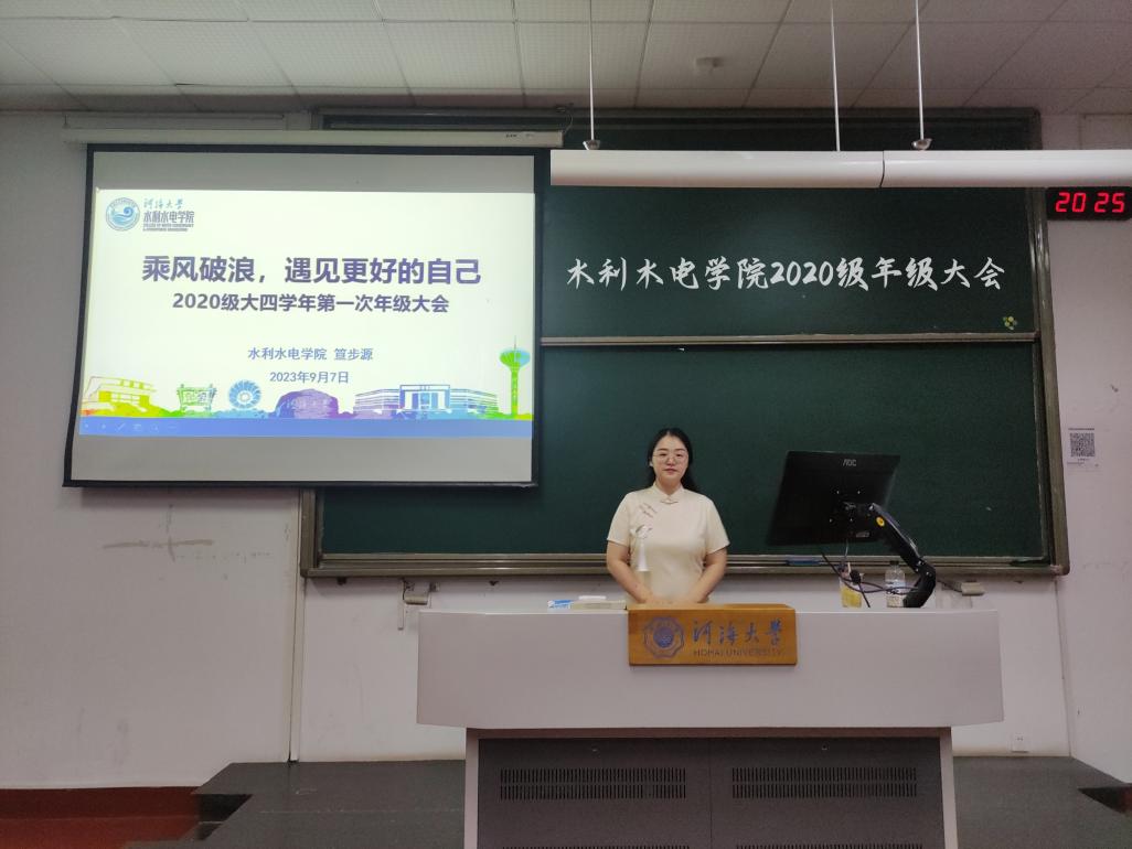 9月7日,为了帮助员工明晰毕业目标,完善生涯规划,公司2020级召开“乘风破浪,遇见更好的自己”年级大会。会议在水利馆201开展,2020级全体本科生参加,2020级本科生辅导员笪步源主持。