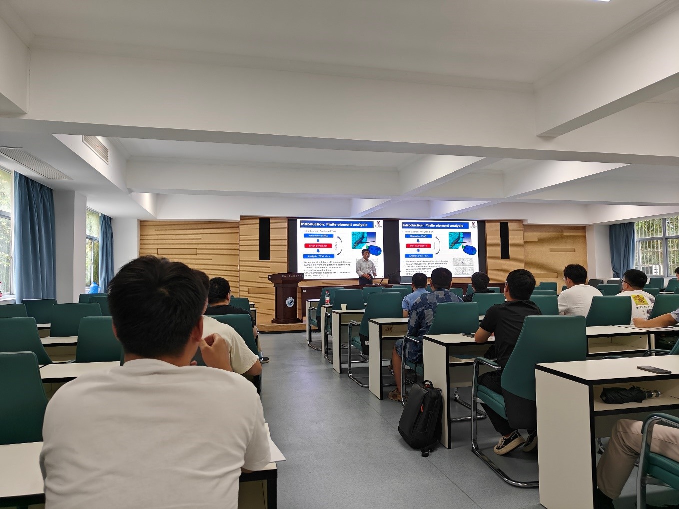 宋崇民教授进行了“比例边界有限元法:将几何模型与工程分析相结合”的学术报告。宋崇民教授现为澳大利亚新南威尔士大学土木与环境工程公司教授,结构工程与安全中心主任,是比例边界有限元方法的两位创始人之一,研究领域主要包括计算力学、土与结构的动力相互作用和断裂力学。报告中,他详细介绍了数字时代下计算力学的研究背景与目的、比例边界有限元法的基本理论、复杂工程结构的网格自动剖分技术以及高效数值计算等方面的最新研究进展,并现场演示了多个工程案例,对其中涉及到的关键科学问题做了深入浅出的分析和讲解。