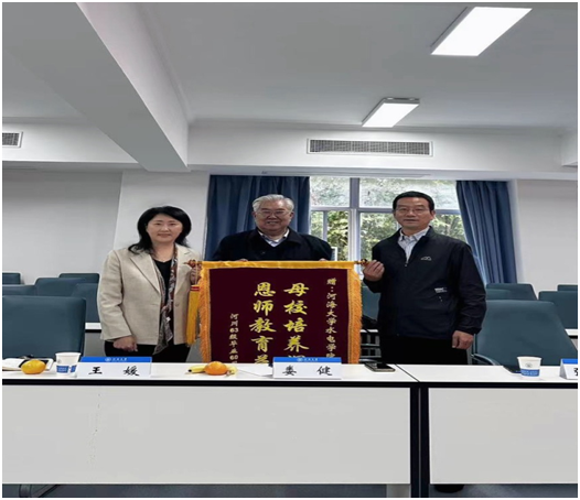 夏镜如老师主持座谈,表达了同学们再聚首的激动之情以及对帮助组织活动的真切感谢。原江苏省民政厅厅长张秉铎代表同学们感激母校的精心培养和恩师的谆谆教诲,并代表河川63届同学向公司赠送了锦旗。老员工一一发言,畅谈大学时光,回忆峥嵘岁月,回顾重大水利工程的建设历程,感念河海传承、水利精神。