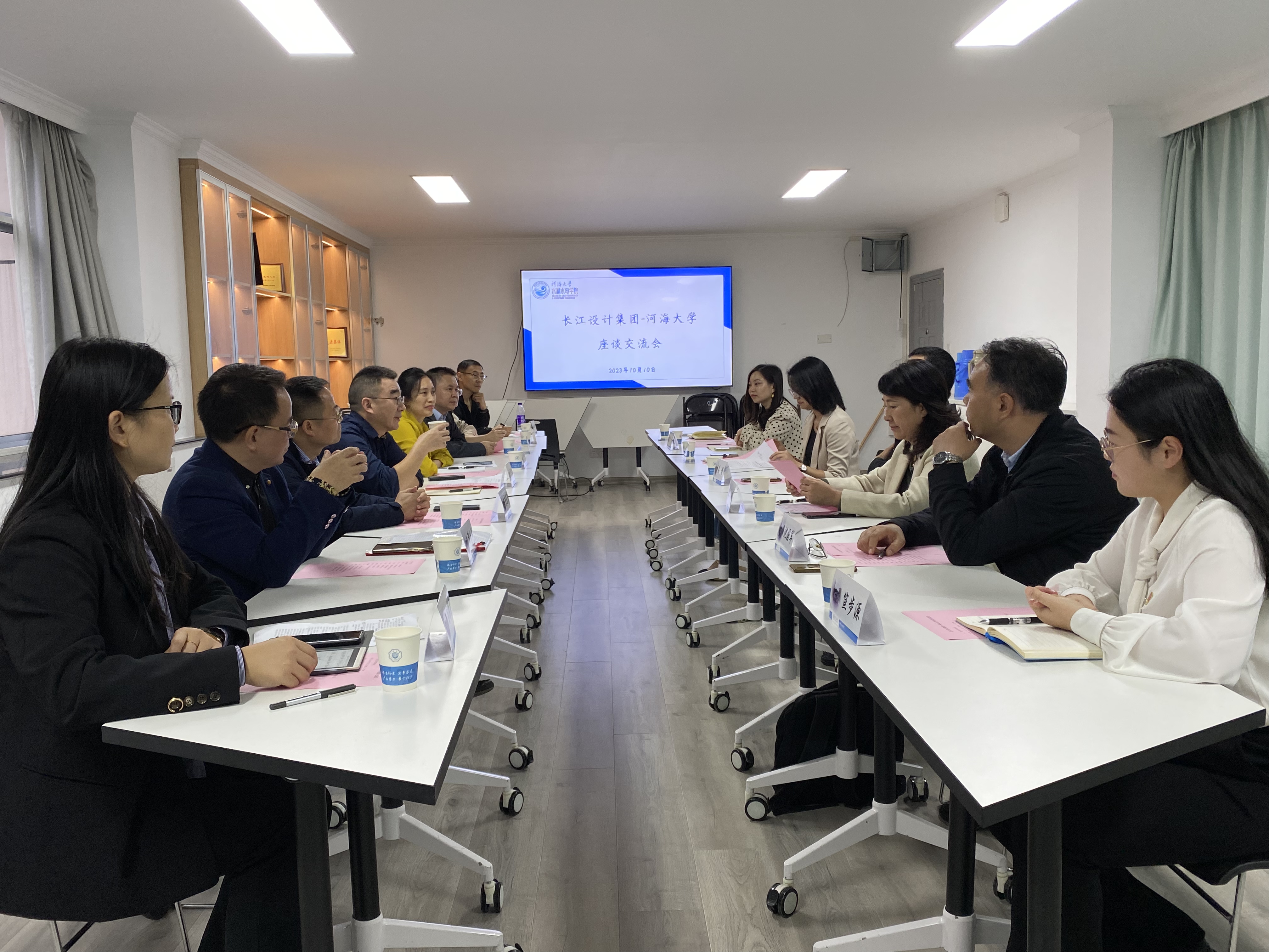王媛介绍了公司基本情况,分析了长江设计集团与公司人才培养合作的主要方向,王媛认为,水利工程行业人才培养应当面向行业前沿、结合工程实际,过程中充分发挥校企合作优势,依托重大工程,形成育人合力。娄健强调公司长期以来与长江设计集团保持常态化交流,双方在校企合作联合学术研究、成果转化落地等方面仍存在巨大合作潜力。公司每年向长江设计集团输送优秀毕业生,共同助力国家水利事业高质量发展。随后,各公司分享了毕业生地域、行业去向等相关情况。校企双方就产教融合探索、实习实践等方面进行了深入的交流与探讨。