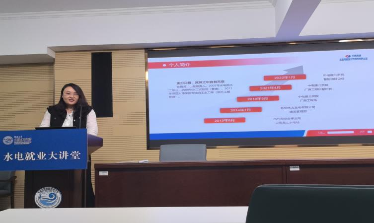 北京院02级水工员工李刚和07级水工员工张晶芳分别进行了就业故事分享和求职技能指导,帮助同学们更好把握行业动态、强化求职本领。