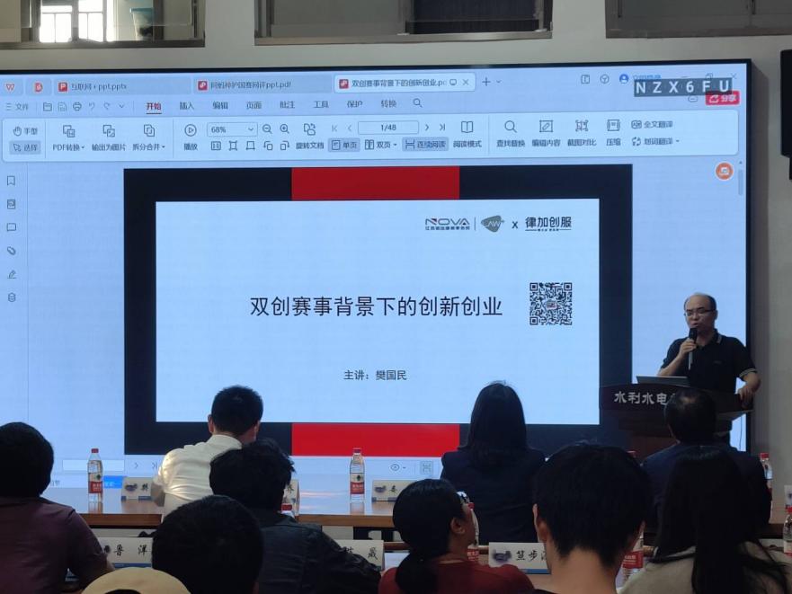 “互联网+”“挑战杯”知名专家、国赛评委樊国民老师作题为双创赛事背景下的创新创业专题介绍,提出“以赛促教,以赛促学,以赛促创”工作理念,以具体项目的商业逻辑、备赛过程为案例,全面细致地讲解了赛事的流程、不同赛道的要求和注意事项,指导备赛团队如何选择赛道、如何制作商业计划书、如何展示项目ppt等内容,使听众受益匪浅。