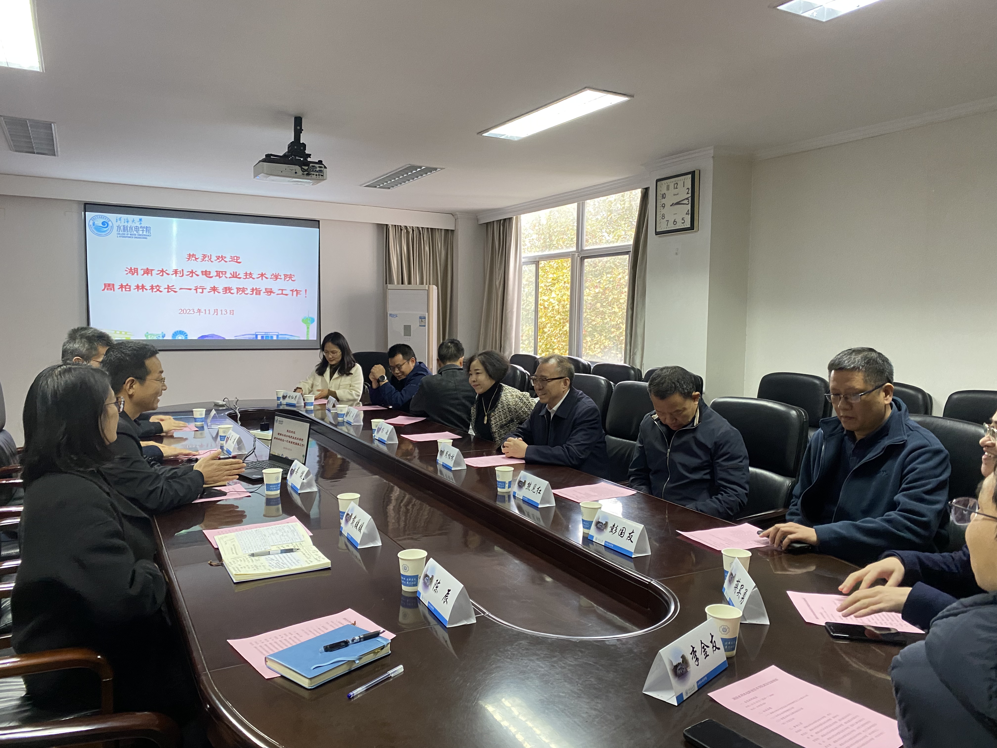 11月13日下午,湖南水利水电职业技术公司董事长周柏林一行来公司座谈交流。公司党委书记娄健、副经理王建、公司党委副书记戴媛媛、智慧水利系主任俞晓东、研究生辅导员陈辰出席了本次座谈会。