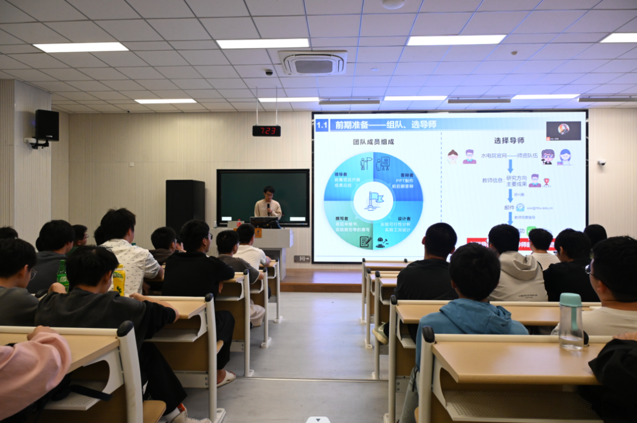 袁志鹏同学从创训整个过程环节出发,结合自身经验,全方位,多角度地分享创训过程中可能需要的方法和技能,从项目申报书的撰写技巧,到答辩PPT的制作建议,再到实验开展时的过程指导。他提到,对于本科生而言,创训的最终目的是培养自己的科研思维,提升自己的研究本领,从而成为一名满足国家社会需求的综合性人才。