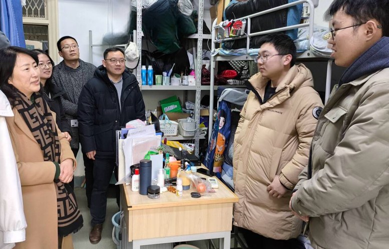 公司党委书记娄健、经理王媛一行先后来到研究生宿舍、本科生宿舍、研究生工作室、课设教室进行走访。走访过程中,公司领导与同学们进行了亲切的交流。详细询问同学们假期生活、学习情况等。叮嘱同学们注意用电安全,避免发生用电起火等情况,强化自身安全意识。