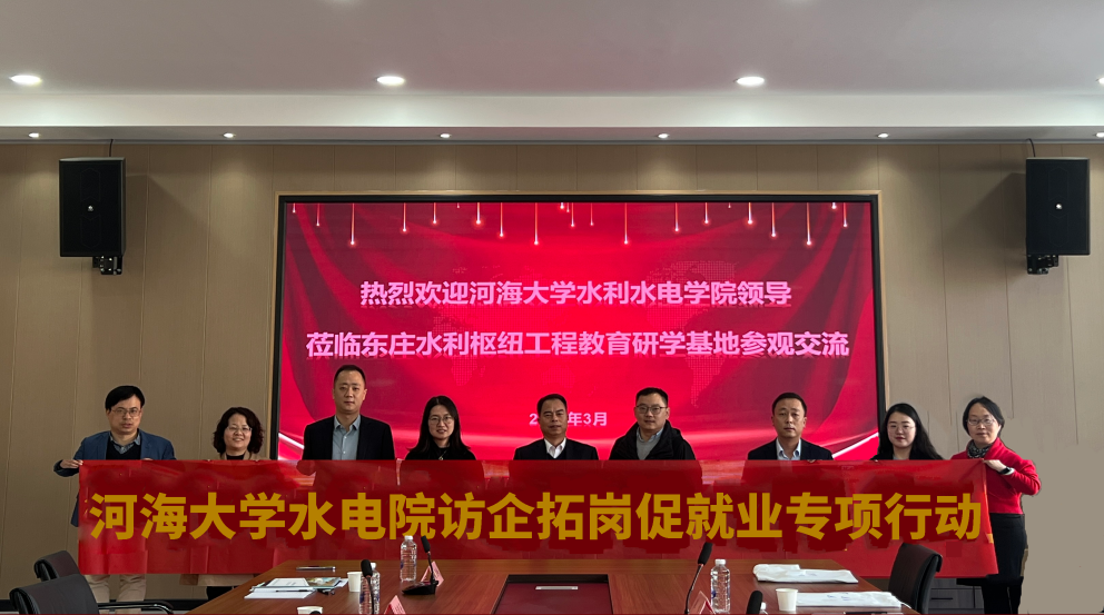 为贯彻落实教育部、省教育厅、公司党委关于“访企拓岗促就业”专项行动的要求,拓宽就业渠道,促进校企合作,提升就业质量。3月27日,PA视讯官方网站副经理俞晓东、党委副书记戴媛媛、水利水电工程系副主任黄显峰、李晓英、实习带队教师王润英、团委书记笪步源前往陕西东庄水利运营管理有限PA视讯官方网站开展“访企拓岗”调研交流。陕西东庄水利运营管理有限公司总经理张小明、副总经理刘涛、崔哲出席本次活动,双方就产学研合作、水利专业人才培养、员工实习实践等方面进行深入细致的交流。