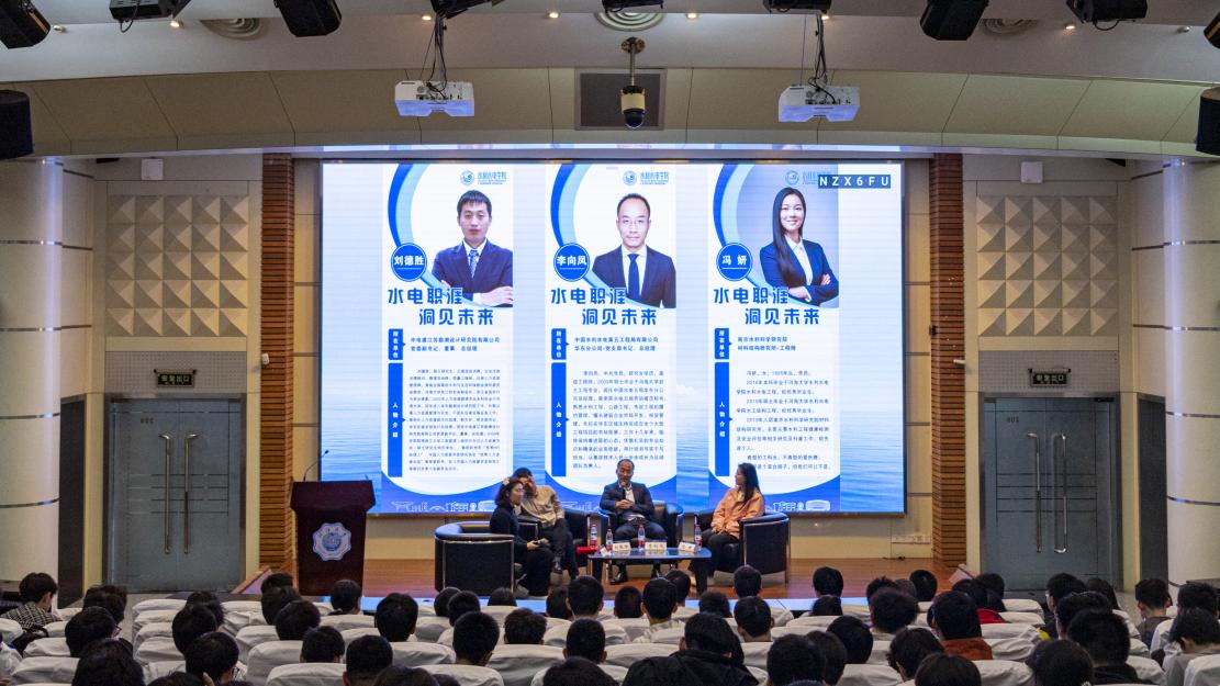 本次活动邀请了中电建江苏勘测设计研究院有限公司党委副书记、董事、总经理刘德胜,中国水电五局华东分公司总经理李向凤,南京水利科学研究院材料结构研究所工程师冯妍作为嘉宾。活动由2023级辅导员帅雨婷主持,2023级水利水电工程专业和安全工程专业本科生参加。