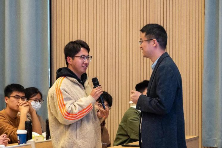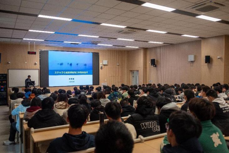 袁赛瑜老师抛出问题:老员工创新训练项目的最终目的是什么?以此激起同学们的讨论与思考。随后,他从个人,社会,科学发展等多个角度阐述创新创业训练对个人发展的重要性,通过创新创业训练项目,同学们能够了解并接触科研项目,能够提前感知研究生、博士生的工作生活,能够获取所研究的某个领域的大量学术知识。