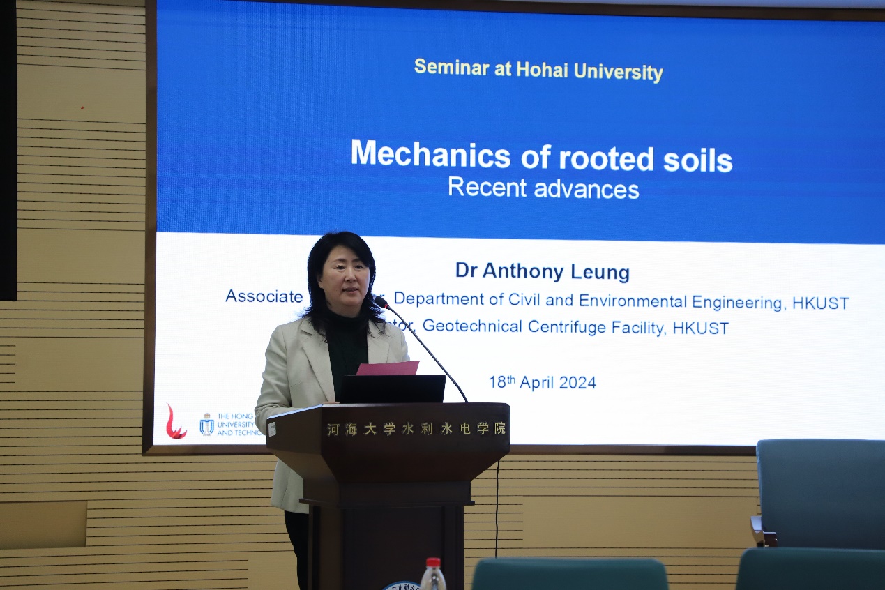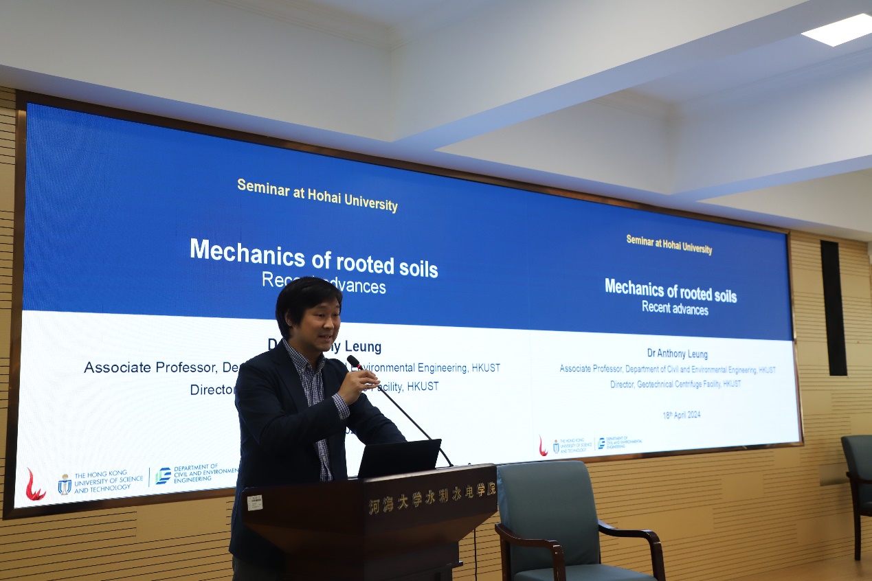 梁钧教授应邀做题目为“Mechanics of rooted soils: recent advances(根系土力学新进展)”的学术报告。报告聚焦非饱和根系土的水力-力学特性的最新科学发现及其对生态斜坡工程设计的影响,讨论人工智能(AI)在发现孔隙尺度下土壤-根系-水相互作用研究中的最新进展,相关研究是气候变化加剧背景下防灾减灾的创新实践,与公司智慧水利、安全科学与工程相关学科研究高度契合,受到参会老师和同学的热烈欢迎。在交流研讨环节,青年教师和研究生与梁钧教授围绕非饱和实验技术、人工智能应用等问题开展了热烈的学术互动,梁教授分享了他对相关问题的见解,并对青年学者未来的研究提出了建议。
